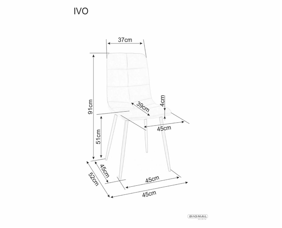 Трапезен стол ИВО впечатлява с модерен дизайн и издръжливост, като е идеален избор за дома, ресторанти и кафенета. Седалката от пяна и кадифен плат осигурява мекота и комфорт, докато черните метални крака с матово покритие гарантират стабилност и здравина. Максималното натоварване от 120 кг прави стола практичен и устойчив. Той съчетава стил и функционалност, добавяйки елегантен акцент към всяко пространство. Подходящ е както за трапезарии и кухни, така и за съвременни интериори.