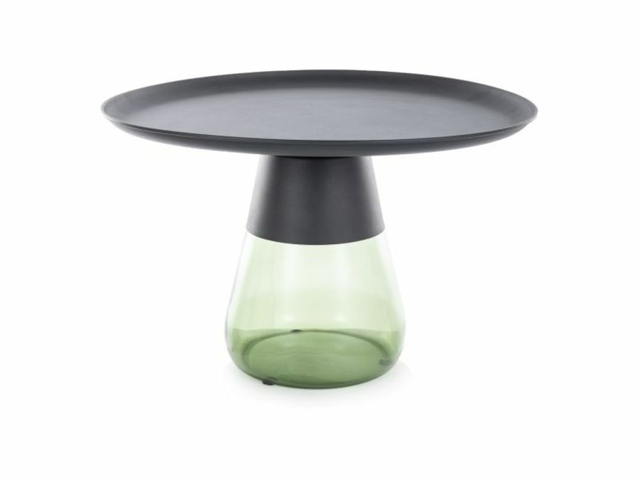 Основата на масата, изработена от прозрачно цветно стъкло, добавя динамика и визуална привлекателност, като създава игра на светлина и нюанси. Плотът, изработен с изключителна прецизност, подчертава съвременния ѝ характер, като същевременно осигурява стабилност и практичност. Всички елементи са хармонично съчетани, за да създадат балансиран и стилен продукт.