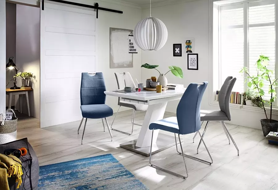 Трапезната маса ГАЛИНА е идеалното съчетание на елегантност и практичност, проектирана да отговаря на нуждите на съвременния дом. Плотът е изработен от МДФ основа, върху която е поставено закалено стъкло, придаващо изискан вид и осигуряващо допълнителна издръжливост. Масата се отличава със своята функционалност, като дължината на плота от 120 см може лесно да бъде увеличена до 160 см благодарение на разтегателния механизъм с централен отвор. Това я прави изключително подходяща както за ежедневна употреба, така и за специални поводи с повече гости.