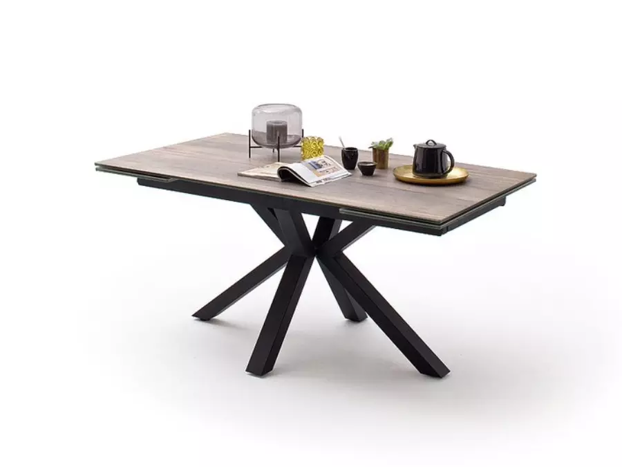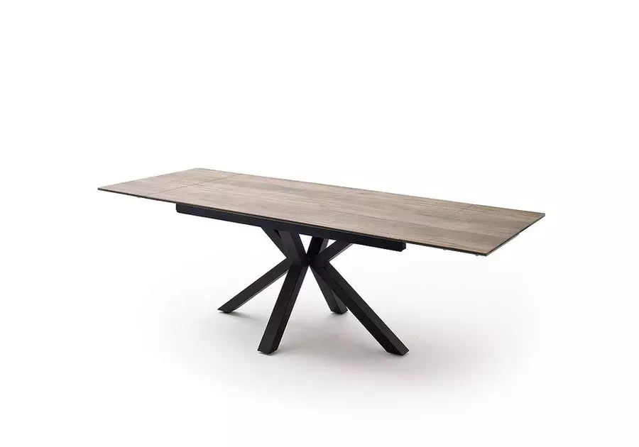 Трапезната маса НАГАНО впечатлява с модерен дизайн и функционалност, подходяща за стилен интериор. Плотът е изработен от висококачествена керамика в светъл дървесен цвят, комбиниран с база от закалено стъкло, което добавя изтънченост и устойчивост. Масивните, подсилени стоманени крака в черен мат гарантират стабилност и елегантен вид. В прибрано състояние, плотът е с дължина 160 см, но лесно може да бъде удължен благодарение на двата независими механизма за разтягане. Всеки от тях добавя по 40 см, като в разтегнато положение дължината на масата достига до 240 см, осигурявайки допълнително място за големи събирания.