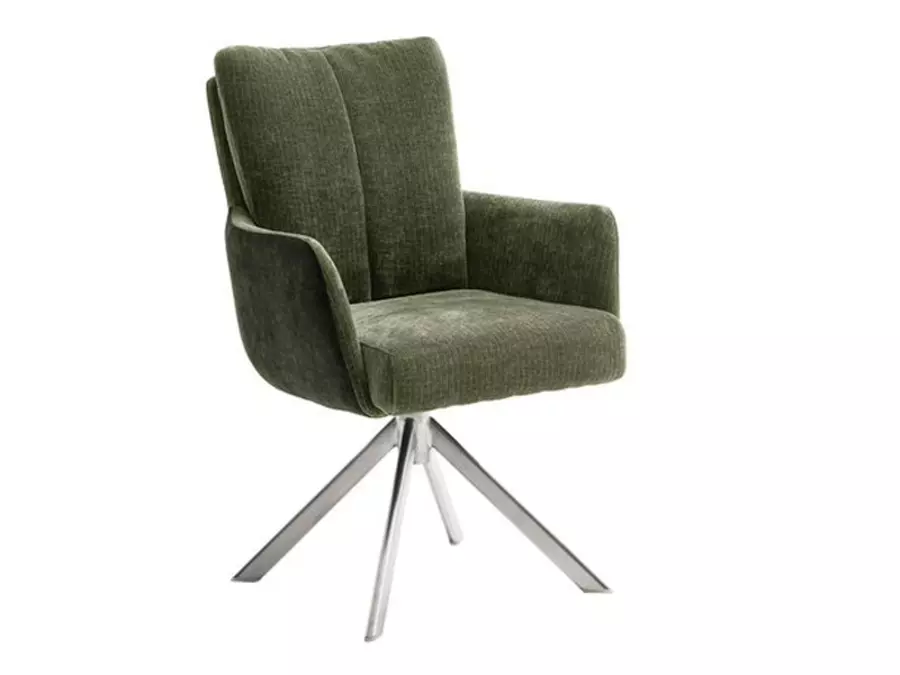 Тапицерията му е стилно комбинирана – вътрешната страна е покрита с изискана дамаска, която придава елегантност, а външната част е облечена във велур, добавящ мекота и луксозен завършек. Маслиненият цвят на креслото е неутрален и същевременно свеж акцент, който лесно се вписва в различни интериорни решения. Максималната товаримост от 120 кг го прави устойчив и надежден избор за ежедневна употреба. "Малия Е" е перфектният баланс между стил, практичност и комфорт.