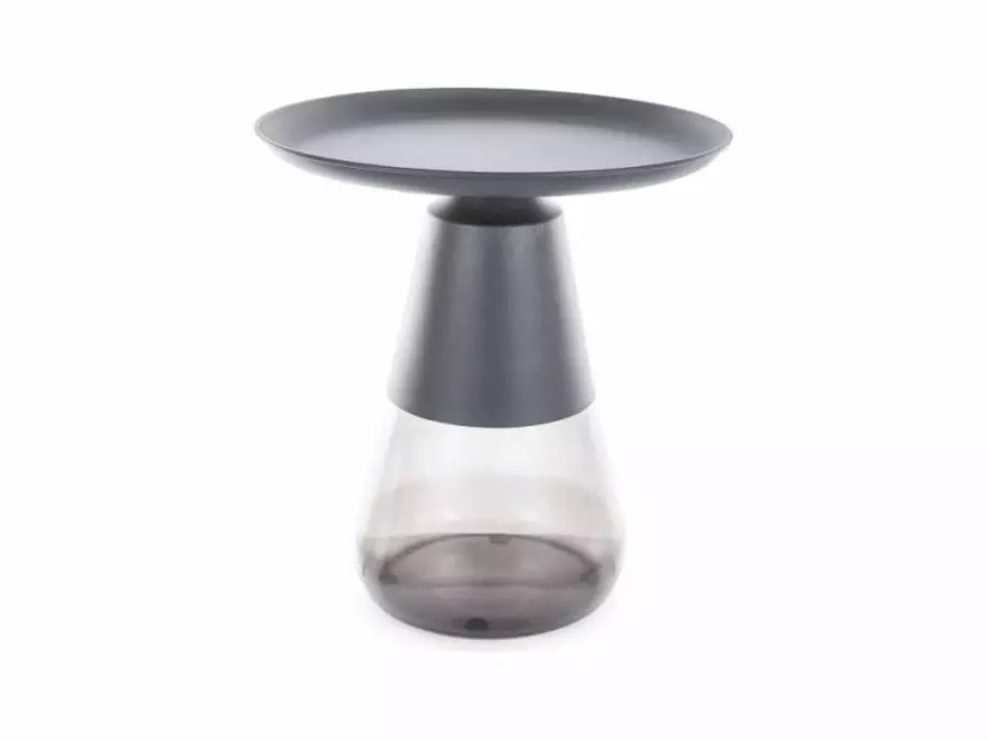 Основата на масата, изработена от прозрачно цветно стъкло, добавя динамика и визуална привлекателност, като създава игра на светлина и нюанси. Плотът, изработен с изключителна прецизност, подчертава съвременния ѝ характер, като същевременно осигурява стабилност и практичност. Всички елементи са хармонично съчетани, за да създадат балансиран и стилен продукт.