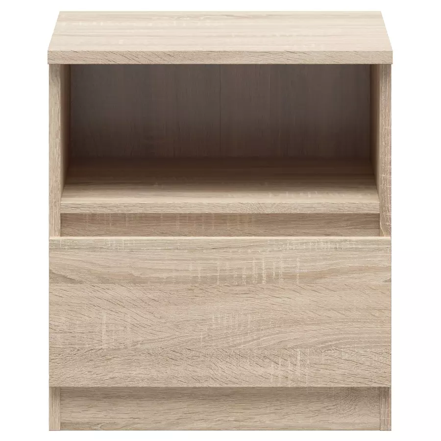 Разполага с едно чекмедже за съхранение на дребни вещи и открит рафт за книги, телефони или други аксесоари.