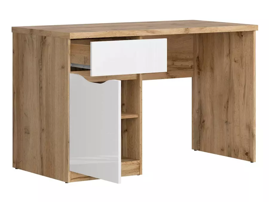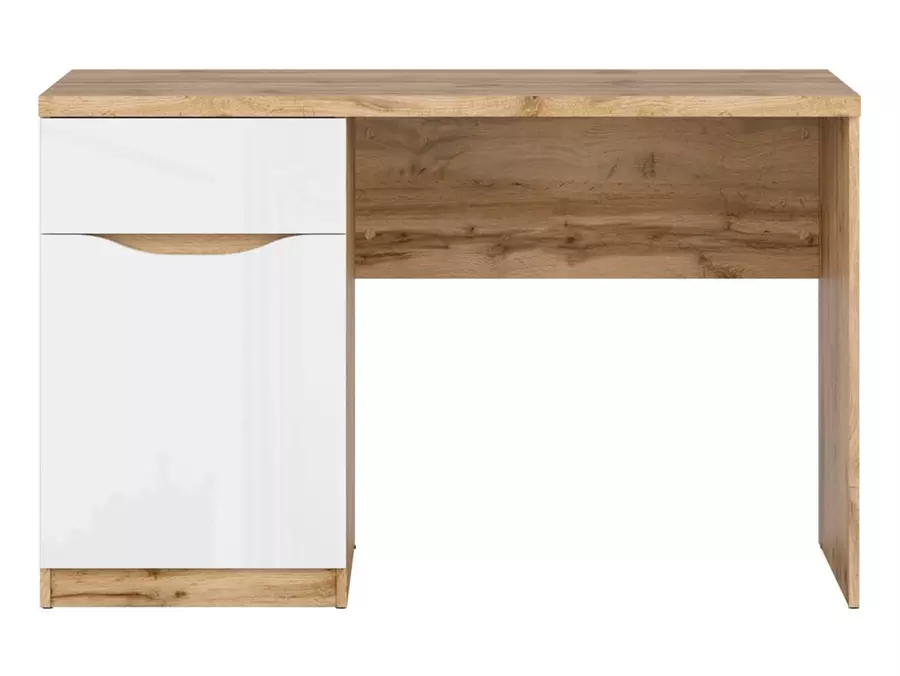 С размери ширина 120 см, височина 75,5 см и дълбочина 60 см, бюро НУИС BIUD1S предлага достатъчно пространство за удобно разположение на лаптоп, монитор и учебни материали. Едното чекмедже осигурява място за съхранение на дребни принадлежности, а шкафът е подходящ за документи, книги или други вещи, които искате да държите под ръка, но извън полезрението. Конструкцията е добре балансирана, което гарантира стабилност и комфорт по време на работа или учене.