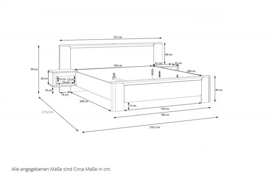 Изработено е от висококачествено ПДЧ, осигуряващо здравина и стабилност. Леглото е предназначено за двулицев матрак с размер 160x200 см, като за неговото използване е необходимо допълнително закупуване на подматрачна рамка. Освен това, конструкцията позволява използването и на еднолицев матрак, без необходимост от допълнителни аксесоари.