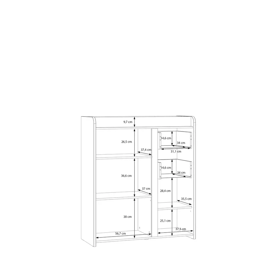 Дизайнът на Ноа HOAK321L-M801 е минималистичен и модерен, с изчистени линии и приятна цветова комбинация, което го прави идеален за всяко помещение – било то спалня, хол или офис. Скринът не само добавя функционалност, но и естетика към интериора, като перфектно се комбинира с други мебели от колекцията Ноа.