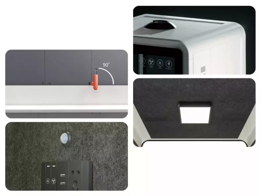 Тази компактна телефонна кабина е идеалното решение за иновативни офиси, които залагат на съвременни технологии и модерни работни условия. Произведена от висококачествени материали, тя гарантира отлична звукоизолация и комфорт. Вътрешното ѝ оформление и прецизната изработка създават уютна и функционална зона за работа и разговори.