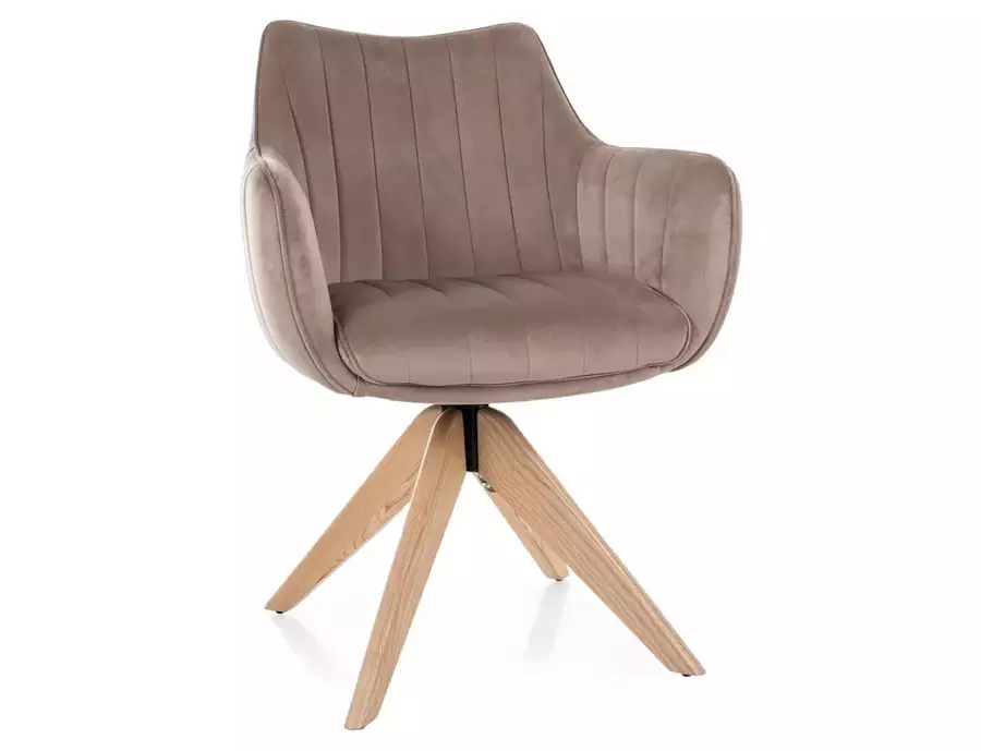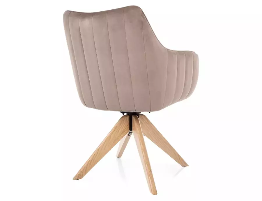 Трапезният стол АЗАЛИЯ D съчетава комфорт, практичност и модерен дизайн, превръщайки се в стилен акцент във всяка трапезария. Конструкцията му е стабилна, с крака, изработени от масивно дърво, които придават естествена топлина и устойчивост. Столът е снабден с въртящ се механизъм до 180 градуса, както и с функция за автоматично връщане в изходна позиция – удобство, което прави използването му още по-лесно и приятно. Седалката и облегалката са тапицирани в мека и приятна на допир дамаска, а вътрешният пълнеж от пяна осигурява оптимален комфорт дори при продължително седене. АЗАЛИЯ D е отличен избор за всеки, който търси съчетание от елегантност и функционалност.