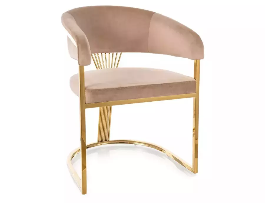 Стабилната метална основа в златист цвят придава на стола луксозно излъчване, като същевременно гарантира здравина и дълготрайност. Трапезен стол КРАЛН е подходящ както за модерни, така и за класически интериори и лесно се комбинира с различни видове маси и декор.