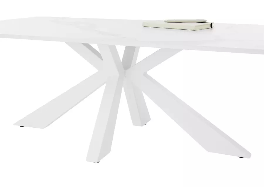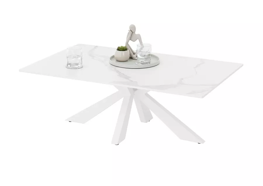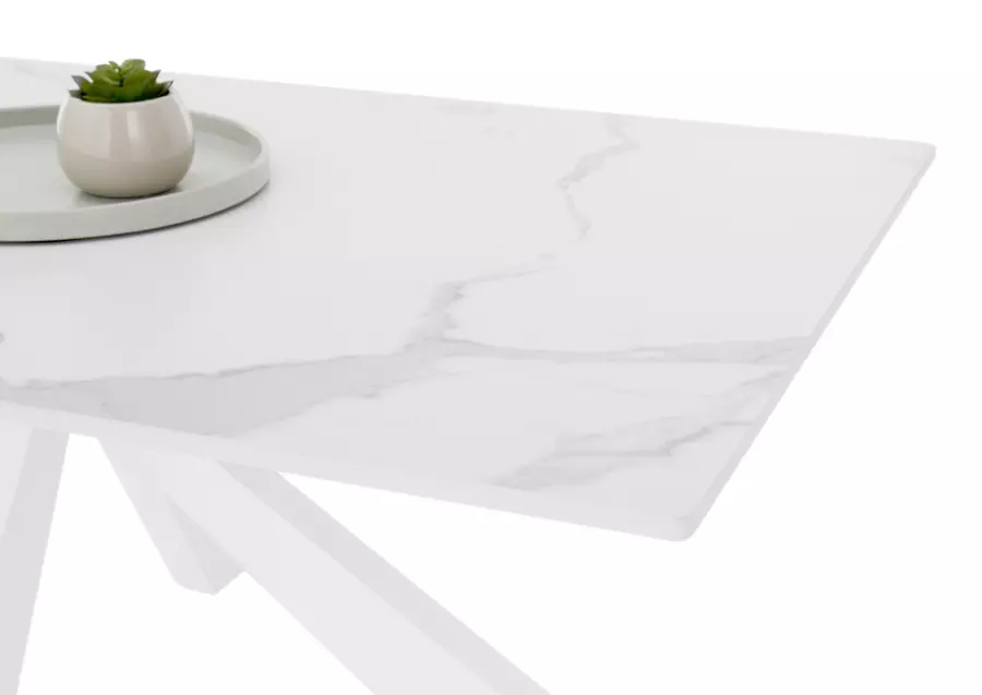 Холната маса НОА впечатлява с изискан дизайн и модерна визия, която лесно се вписва във всеки съвременен интериор. Плотът е изработен от керамика с красив мраморен ефект, който придава елегантност и усещане за лукс. Освен с изтънчена визия, керамичният плот се отличава с изключителна здравина, устойчивост на надраскване и лесна поддръжка – идеално решение за ежедневна употреба.