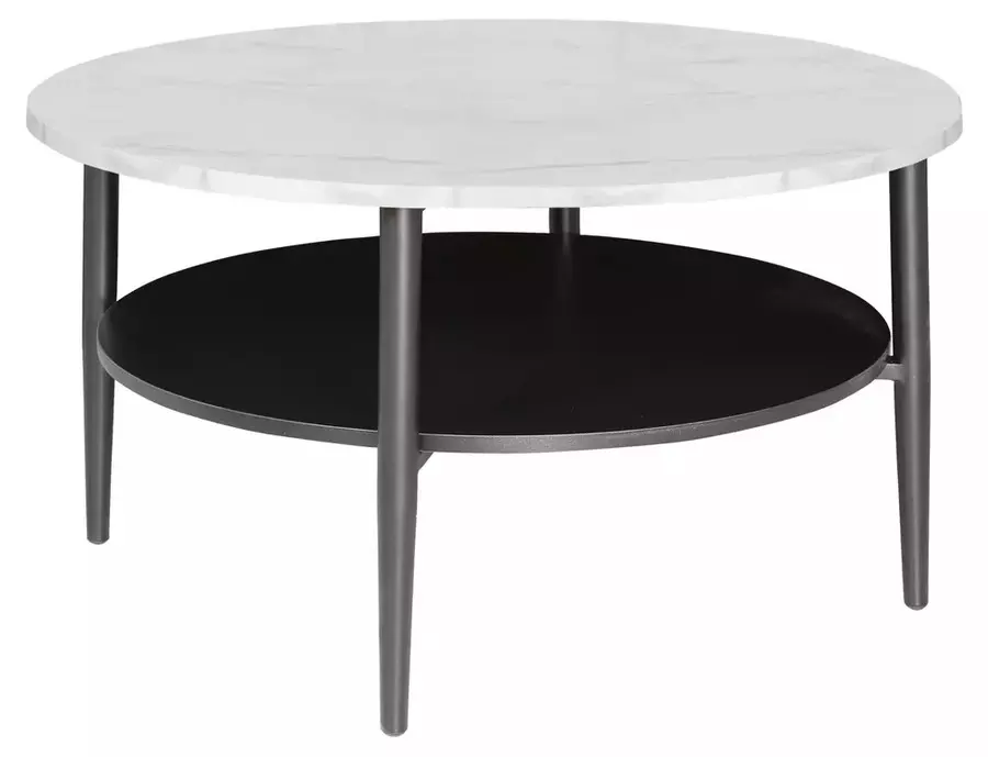 Холна маса ЕЛЛА А е стилно и практично допълнение към модерния интериор. Със своя кръгъл силует и изчистена визия, тя съчетава елегантност и функционалност. Горният плот е изработен от ПДЧ с мраморен ефект, който придава усещане за лукс и същевременно се поддържа лесно в ежедневието. Допълнителният долен плот осигурява място за съхранение на книги, дистанционни или декоративни аксесоари.