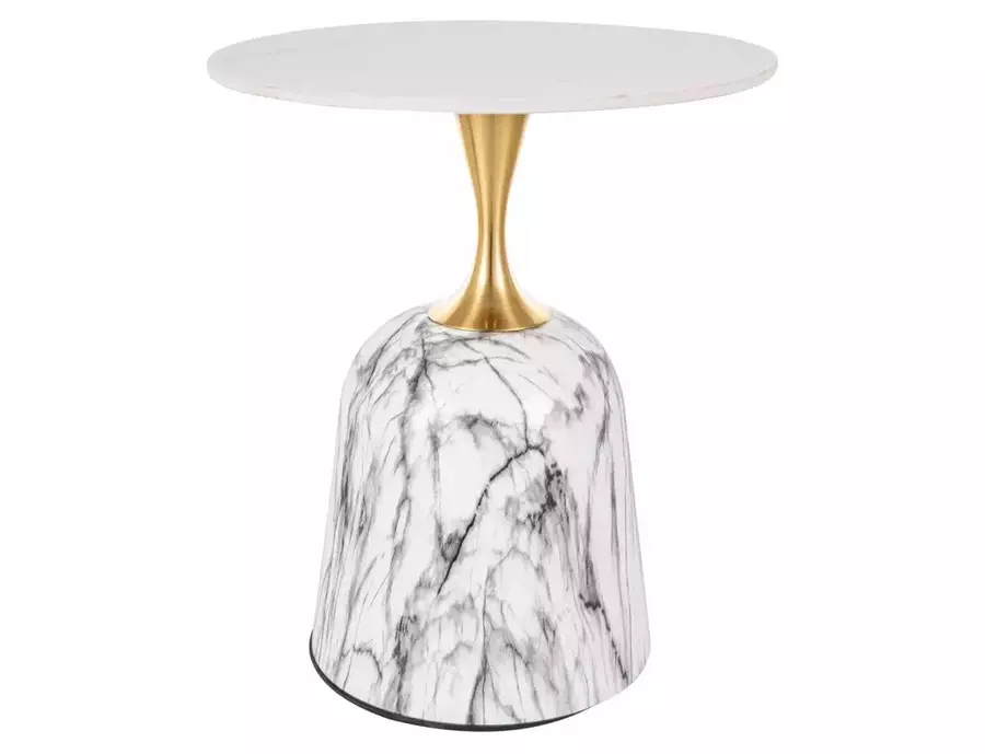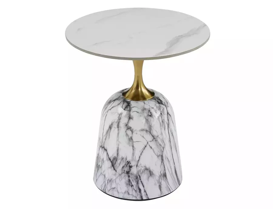 Холна маса ФАМА е изискано допълнение към интериора, което комбинира елегантност и модерна визия в едно стилно решение. Със своята кръгла форма и прецизно изработен дизайн, тя внася усещане за изтънченост и уют във всяка дневна. Плотът е изработен от керамика с мраморен ефект – материал, който придава луксозен вид, същевременно е лесен за поддръжка и устойчив на износване.