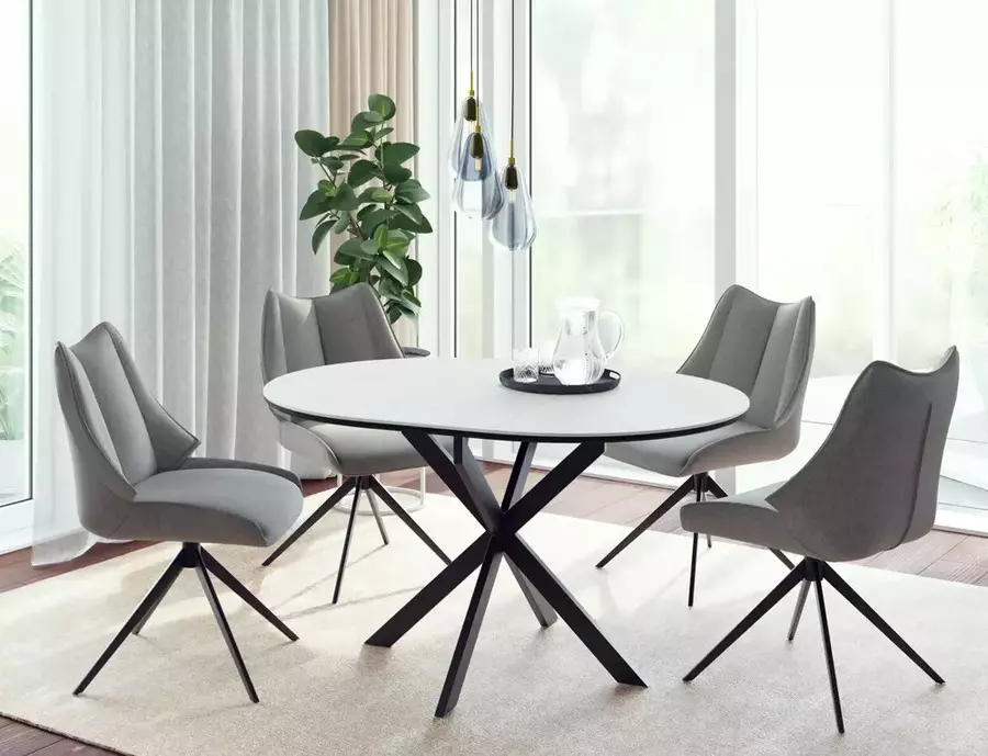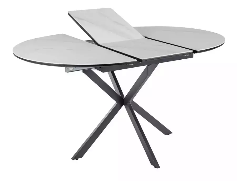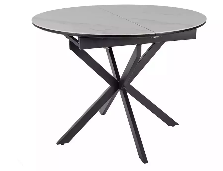 Трапезна маса ГАСТОН впечатлява с модерен дизайн, компактна форма и практична функционалност, съчетавайки стил и удобство в едно. В събрано положение масата е с диаметър 100 см, а благодарение на вградения разтегателен механизъм, тя лесно се увеличава до 135 см, осигурявайки повече пространство за гости и семейни събирания.