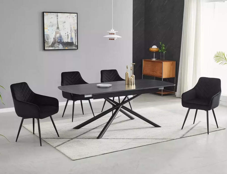 Плотът е изработен от керамика в черен матов цвят, който придава модерен и изтънчен характер, като същевременно е устойчив на надраскване, топлина и петна. Металната основа осигурява стабилност и издръжливост, допълвайки елегантния силует на модела. ГАСТОН 140 е идеално съчетание между естетика и функционалност, подходящо за всекидневна употреба и специални поводи.