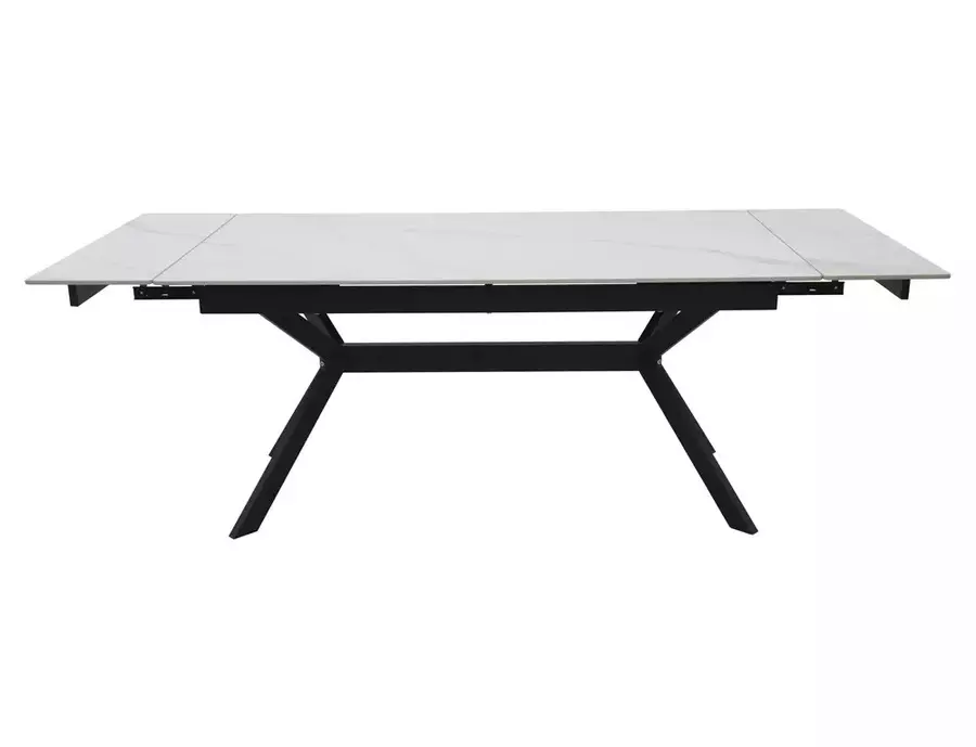 В основно положение дължината на масата е 160 см, а при нужда лесно се разтяга до 220 см благодарение на двата индивидуални плота за удължаване, всеки с дължина 30 см. Здравата метална основа осигурява стабилност и допълва модерния силует на модела. ИМПЕРИА е отличен избор както за ежедневни вечери със семейството, така и за посрещане на гости в стилна обстановка.