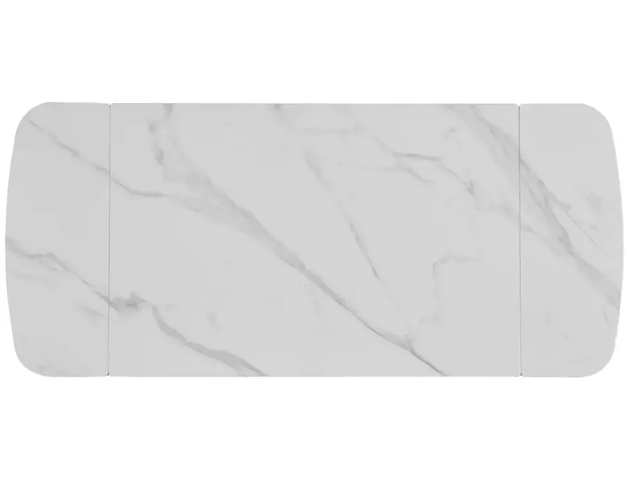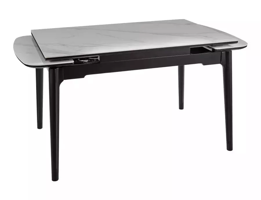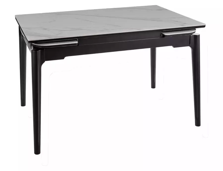 Плотът е изработен от висококачествена керамика с гланцов мраморен ефект, който придава усещане за лукс и лесно се поддържа. Той е устойчив на надрасквания, влага и високи температури. Основата е от дърво в елегантен матово черен цвят, придаваща стабилност и модерен акцент към цялостната визия на масата. СЕНТО е перфектен баланс между стил и практичност – подходяща както за ежедневието, така и за специални поводи.