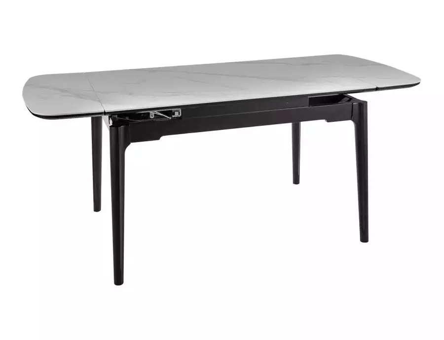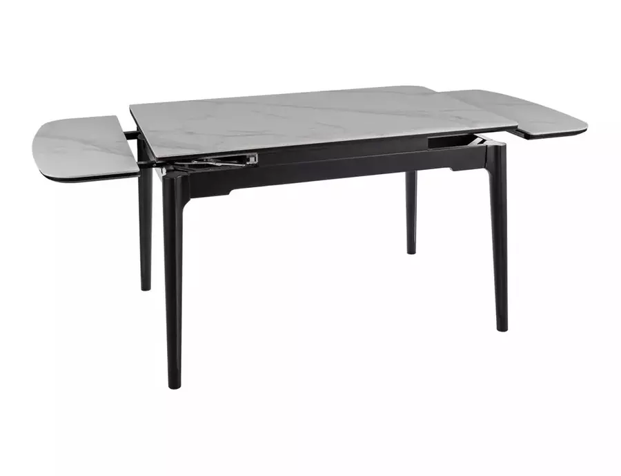 Трапезна маса СЕНТО съчетава елегантен дизайн, модерни материали и впечатляваща функционалност, което я прави отличен избор за стилната трапезария. В основно състояние масата е с дължина 120 см, но благодарение на два индивидуални механизма за разтягане от двете страни, тя може да достигне до 180 см, осигурявайки комфортно място за повече гости и специални поводи.