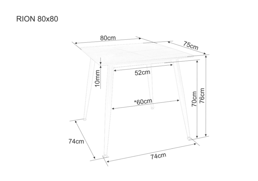 Трапезна маса РИОН е компактно и модерно решение, създадено с внимание към детайла и практичността. С размер на плота 80x75 см, моделът е идеален за по-малки пространства – кухни, трапезарии или студиа, където всяка мебел трябва да бъде едновременно функционална и стилна.