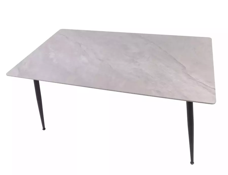 Трапезна маса РИОН е съвременно и стилно решение за всяка трапезария, което съчетава елегантна визия и висока устойчивост. Плотът е изработен от керамика с мраморен ефект в изтънчен антрацитен цвят – модерен нюанс, който придава дълбочина и характер на интериора, без да доминира.