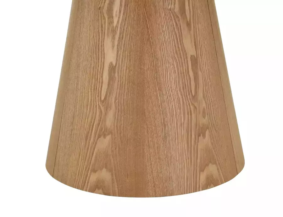 Трапезна маса ЕЙНДЖЪЛ е изящно предложение с кръгла форма и класическа визия, което внася топлина и елегантност в интериора. Изработена от МДФ с естествен фурнир, масата съчетава здравина с естествена текстура и усещане за уют, характерно за дървесината.