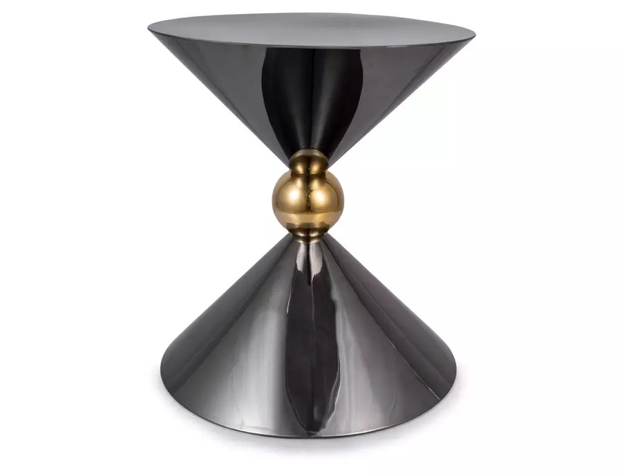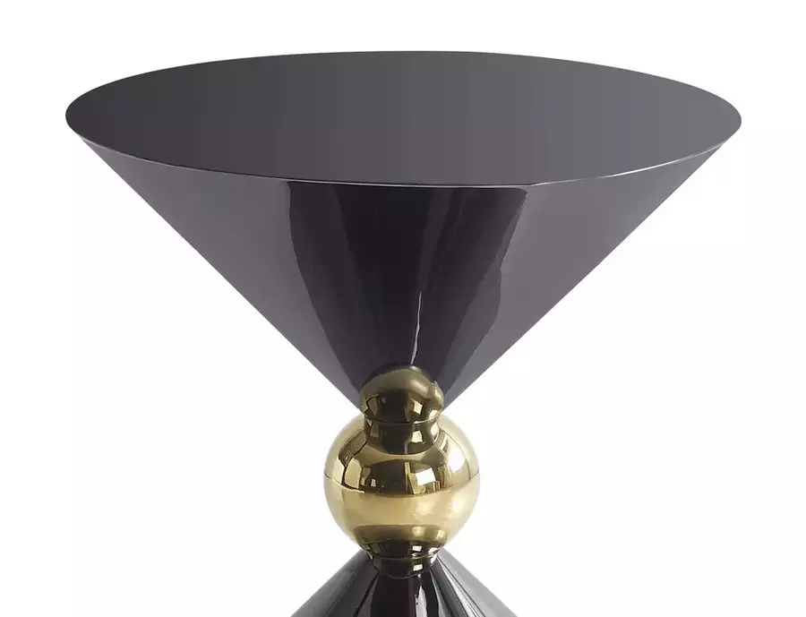 Черният цвят ѝ придава изчистена и универсална визия, а златистият елемент в основата добавя изтънченост и усещане за лукс. Интересната форма на основата превръща масата в декоративен елемент, който изпъква дори в най-минималистичната обстановка.