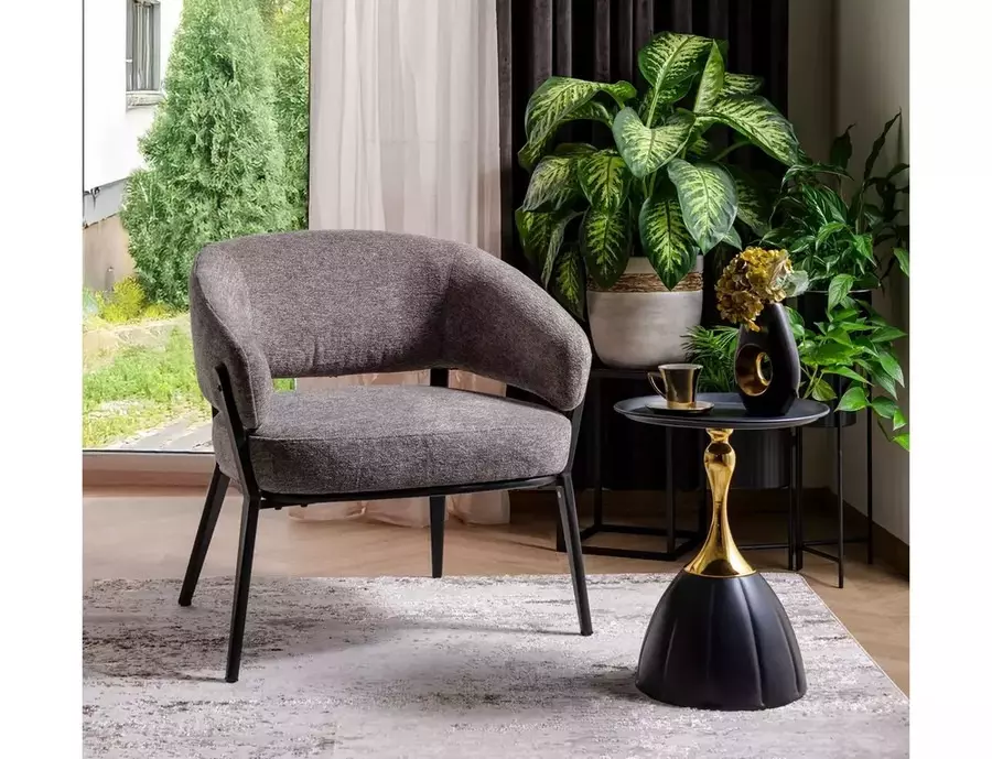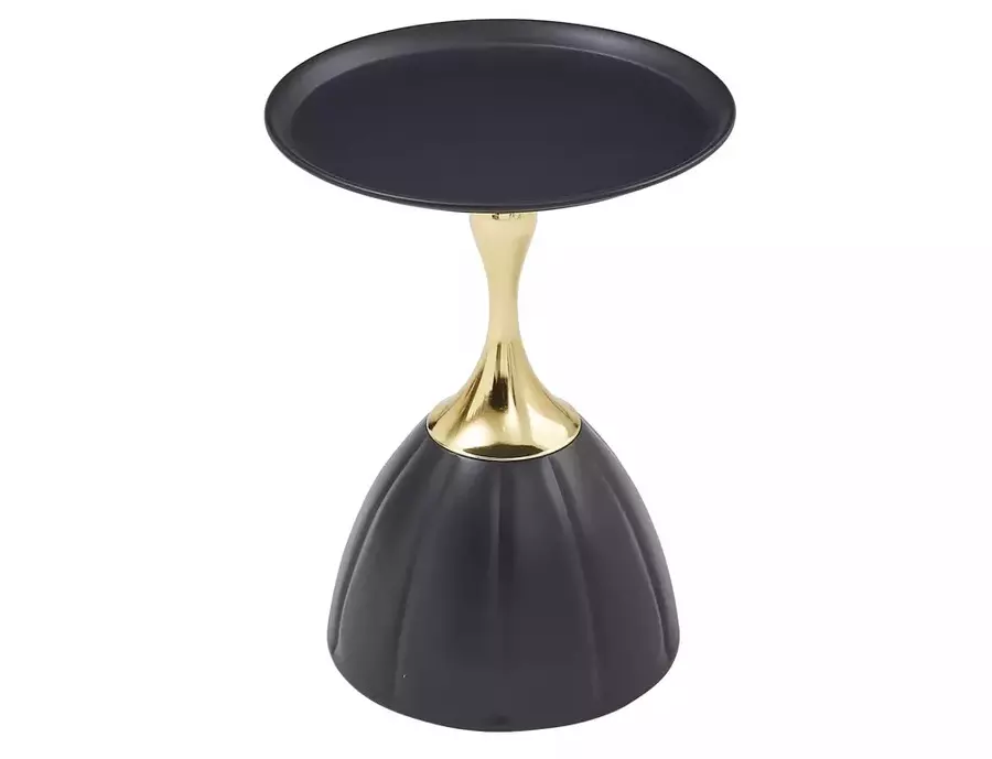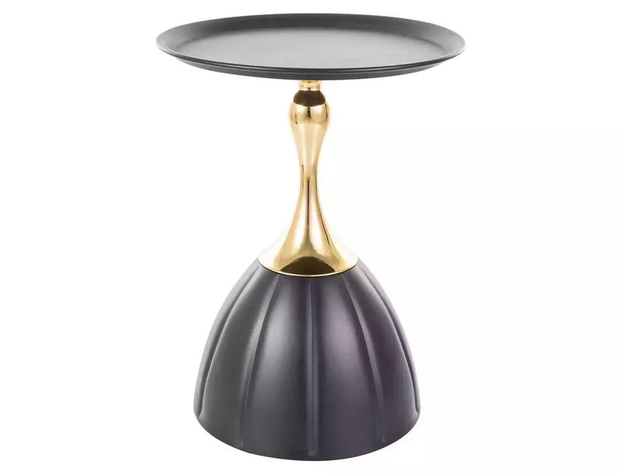 Холна маса ПИАНА е изтънчено предложение с характер и стил, съчетаващо функционалност с изразена естетика. Кръглият ѝ плот е оформен като поднос, което не само придава интересна визия, но и осигурява практичност, като предпазва предметите от приплъзване. Дизайнът ѝ е фино балансиран между модерно и класическо – с черна основа и златист акцент, който добавя усещане за лукс и завършеност.
