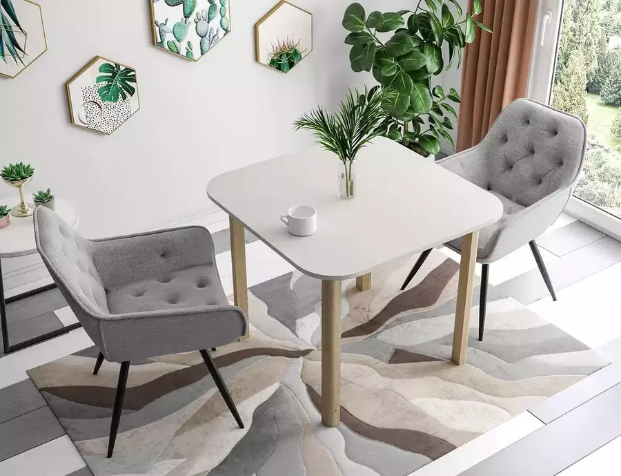 Трапезна маса ДАНТЕ съчетава компактен дизайн и удобна функционалност. Плотът е с размер 90х90 см в събрано положение и може лесно да се разшири до 130 см чрез практичен разтегателен механизъм – перфектно решение за по-големи събирания. Изработен от ПДЧ, плотът е в модерен цвят кашмир, който носи елегантно излъчване. Контрастните крака в топъл дървесен нюанс Дъб Кремона Торо придават завършен и стилен вид на масата.