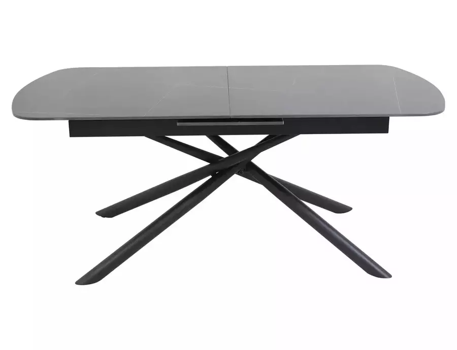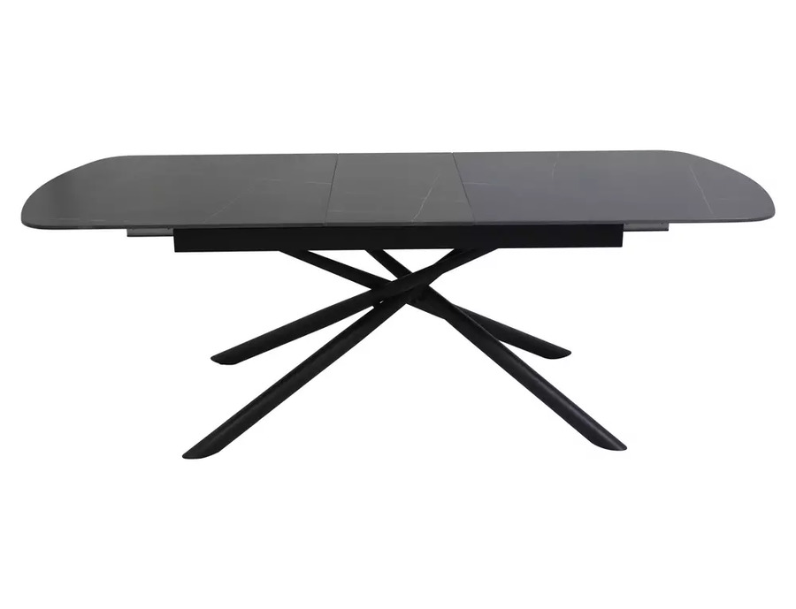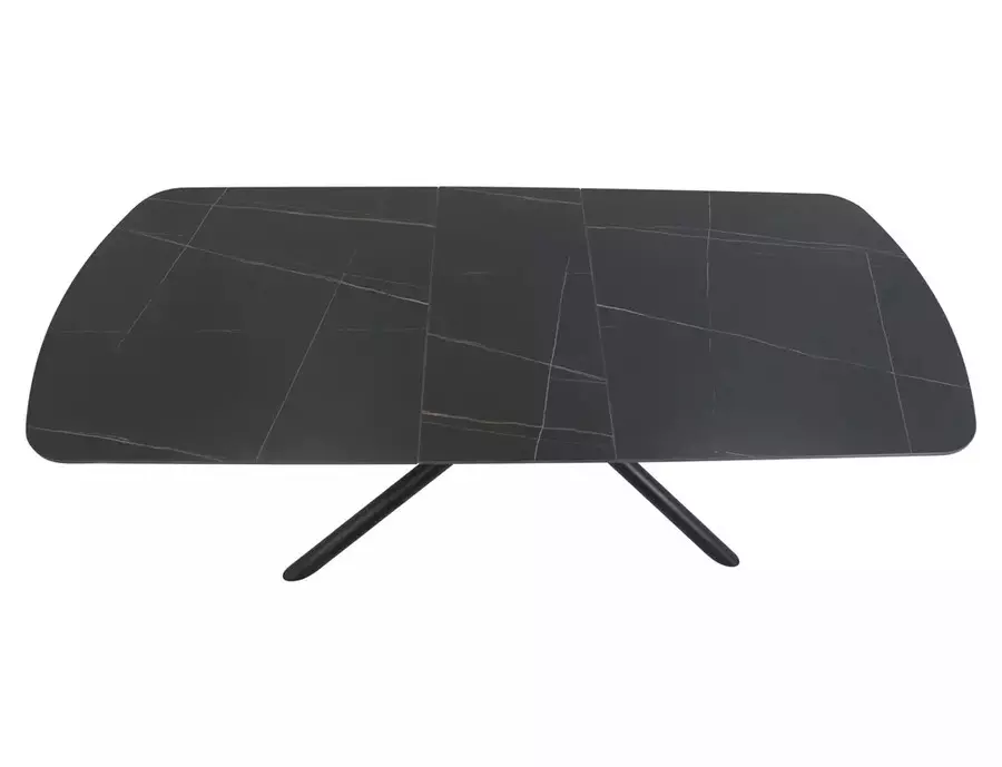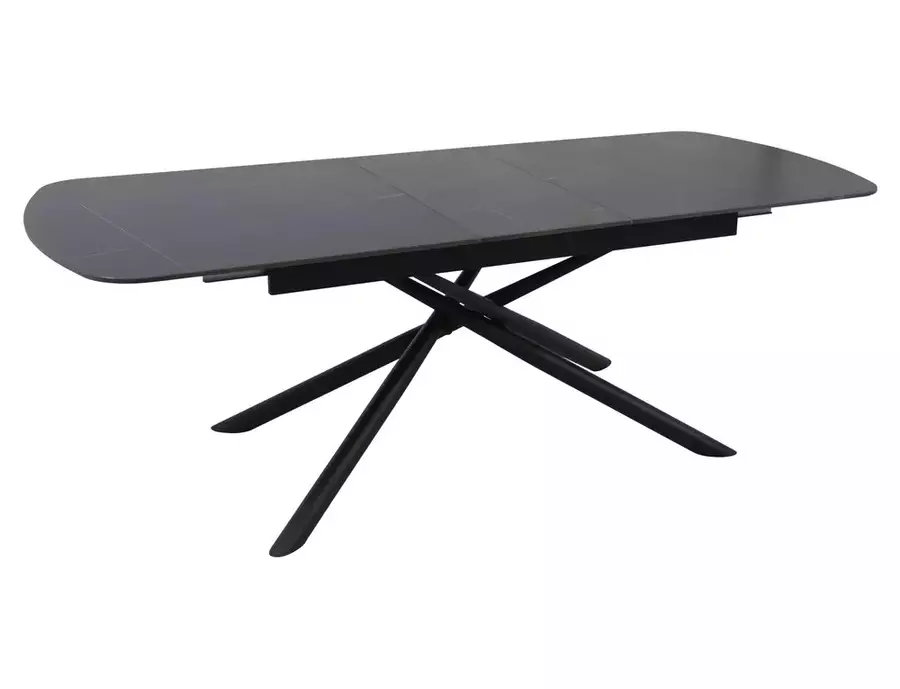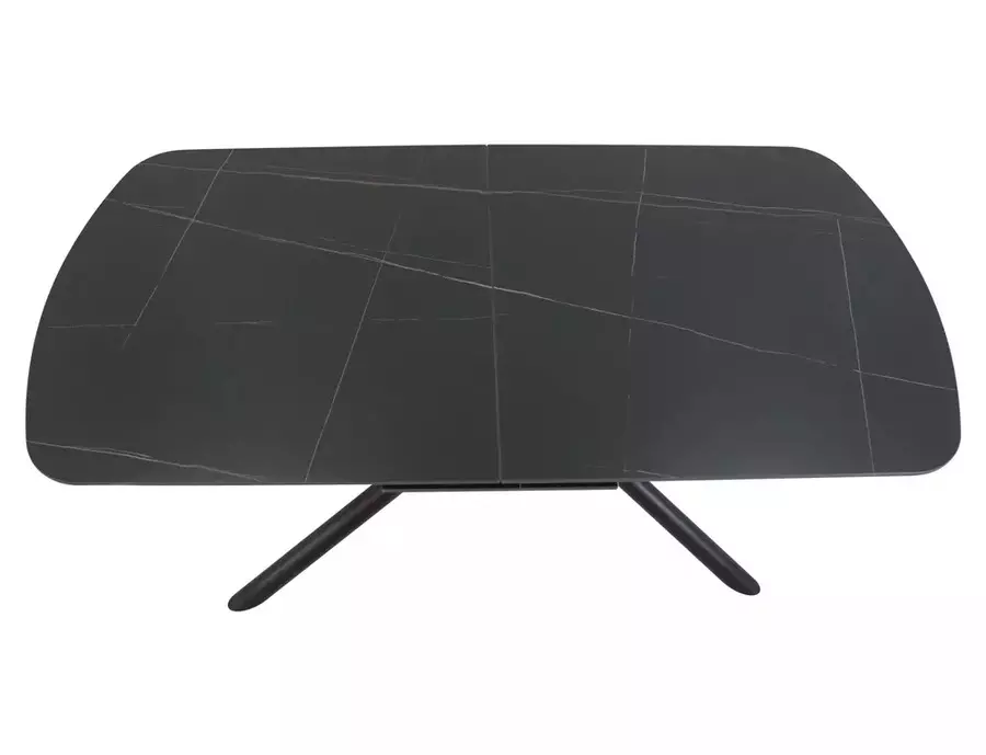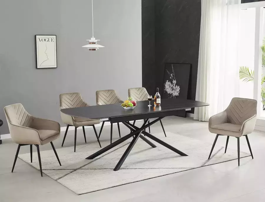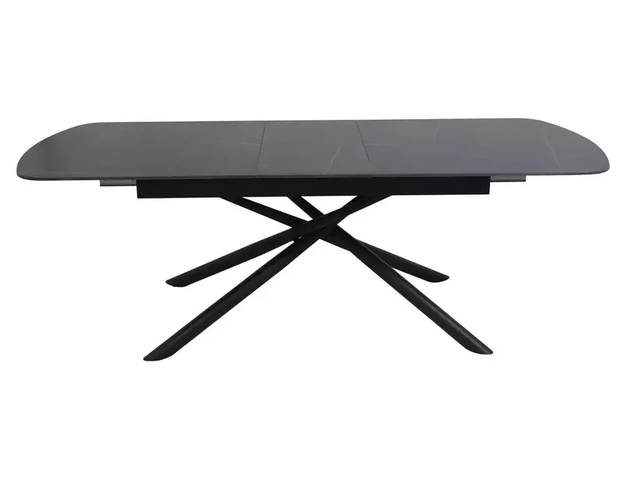 Трапезна маса ВЕКТОР е модерно и стилно решение, съчетаващо устойчиви материали и впечатляващ дизайн. Плотът е изработен от керамика в матово черен цвят – издръжлив, лесен за поддръжка и устойчив на топлина и надраскване. Металната конструкция осигурява стабилност и здравина при ежедневна употреба. Благодарение на разтегателния механизъм, дължината може да се увеличи от 180 см до 220 см, което я прави изключително функционална при нужда от повече пространство. Елегантните форми и изчистеният силует подчертават съвременния ѝ характер.