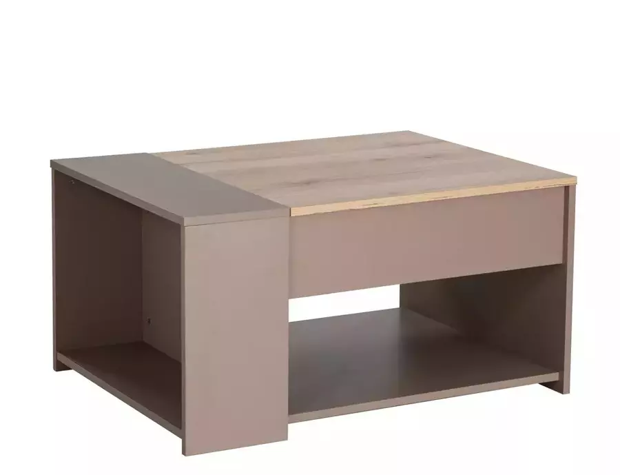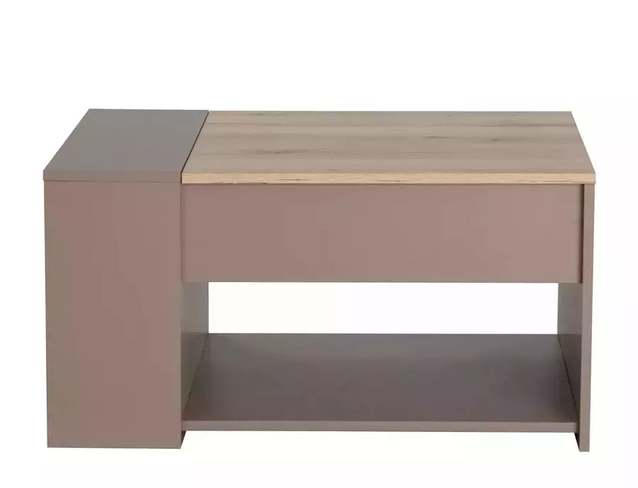 Холна маса ДРОП е практично решение с модерен акцент, създадено за динамичния живот у дома. Разполага с повдигащ механизъм, който позволява удобна трансформация при нужда – максималната ѝ височина достига до 56 см, подходяща за хранене или работа. Изработена е от ПДЧ с метален механизъм за стабилност и надеждност при използване. Плотът е в топъл цвят дъб артизан, който контрастира елегантно с корпуса в бежов тон, придавайки на масата съвременно излъчване.