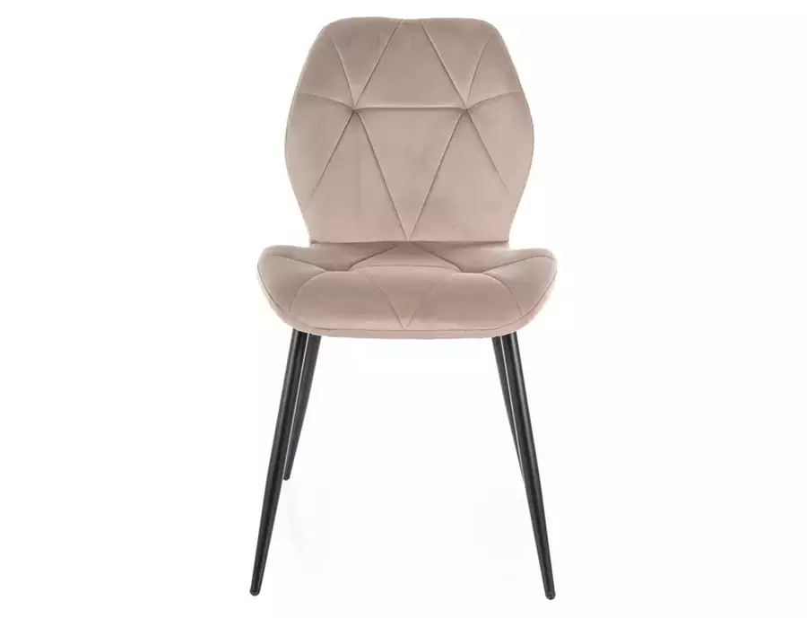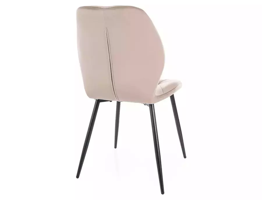 Трапезен стол РИК съчетава класическа елегантност и съвременна устойчивост, което го прави стилен акцент във всяка трапезария. Тапициран в мек кадифен текстил, който е не само приятен на допир, но и лесен за поддръжка, столът осигурява комфорт и изискан външен вид. Декоративният капитонаж на облегалката придава дълбочина и текстура, подчертавайки изтънчения му характер.
