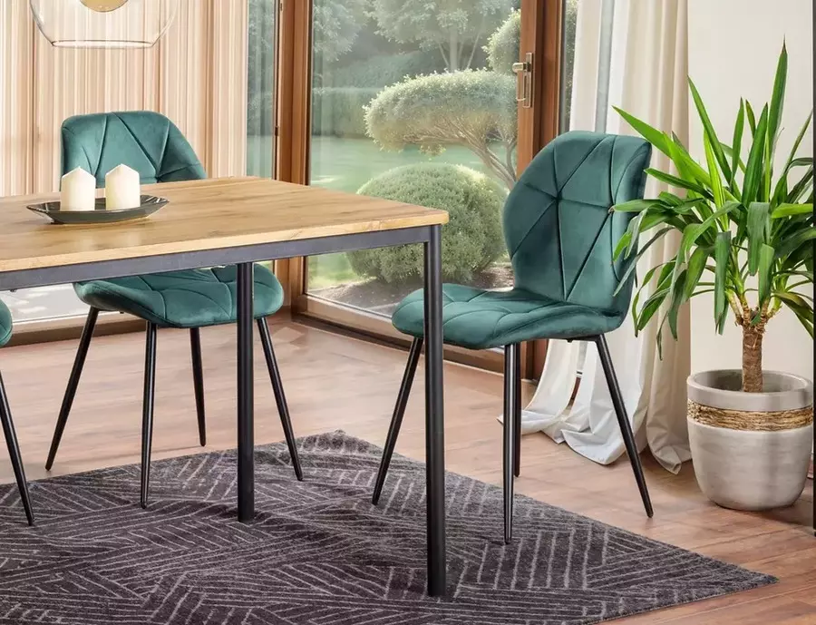 Трапезен стол РИК съчетава класическа елегантност и съвременна устойчивост, което го прави стилен акцент във всяка трапезария. Тапициран в мек кадифен текстил, който е не само приятен на допир, но и лесен за поддръжка, столът осигурява комфорт и изискан външен вид. Декоративният капитонаж на облегалката придава дълбочина и текстура, подчертавайки изтънчения му характер.