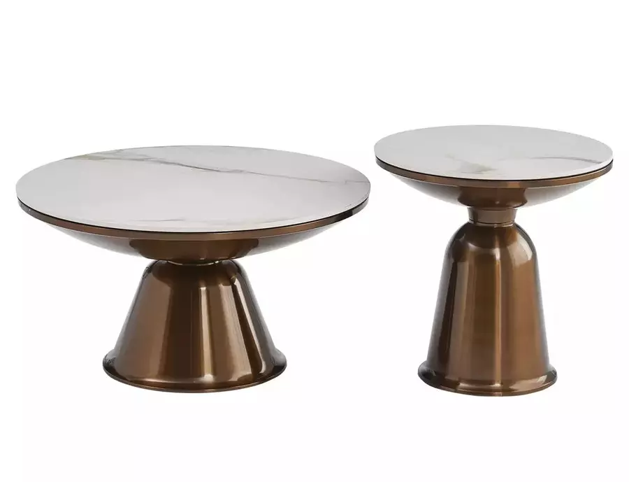 Комплект холни маси ВЕРА е съчетание от елегантност, изчистен дизайн и съвременна функционалност. Със своята кръгла форма и изискано присъствие, те придават стил и баланс на всяка дневна зона. Плотовете са изработени от висококачествена керамика с мраморен ефект – издръжлив материал, който е устойчив на надрасквания, топлина и влага, като същевременно създава усещане за лукс.