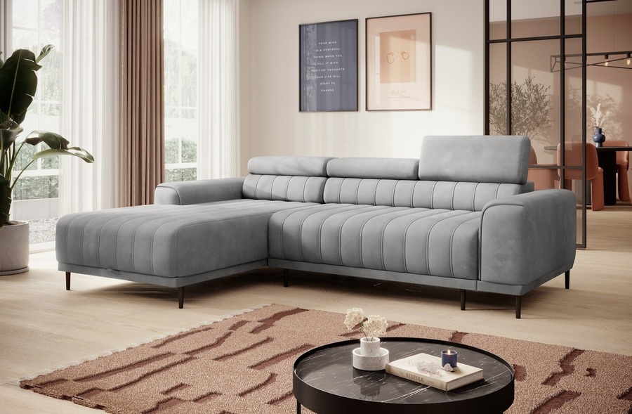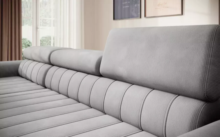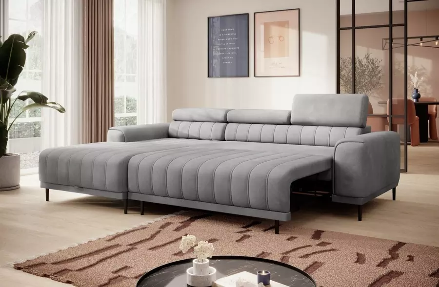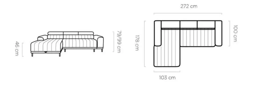 Ъгловият диван КАЛДО S е стилно и функционално решение за всяка модерна дневна. Съчетава изчистен дизайн с множество практични характеристики, които го правят идеален както за почивка, така и за ежедневна употреба. Моделът разполага с удобна лежанка, под която се намира просторна ракла с размери 165х65х16 см – перфектна за съхранение на спално бельо или сезонни вещи. Благодарение на вградения ПУМА механизъм, диванът лесно се превръща в легло с площ 215х136 см, осигуряваща комфортно място за сън.