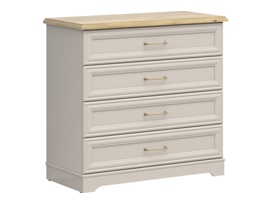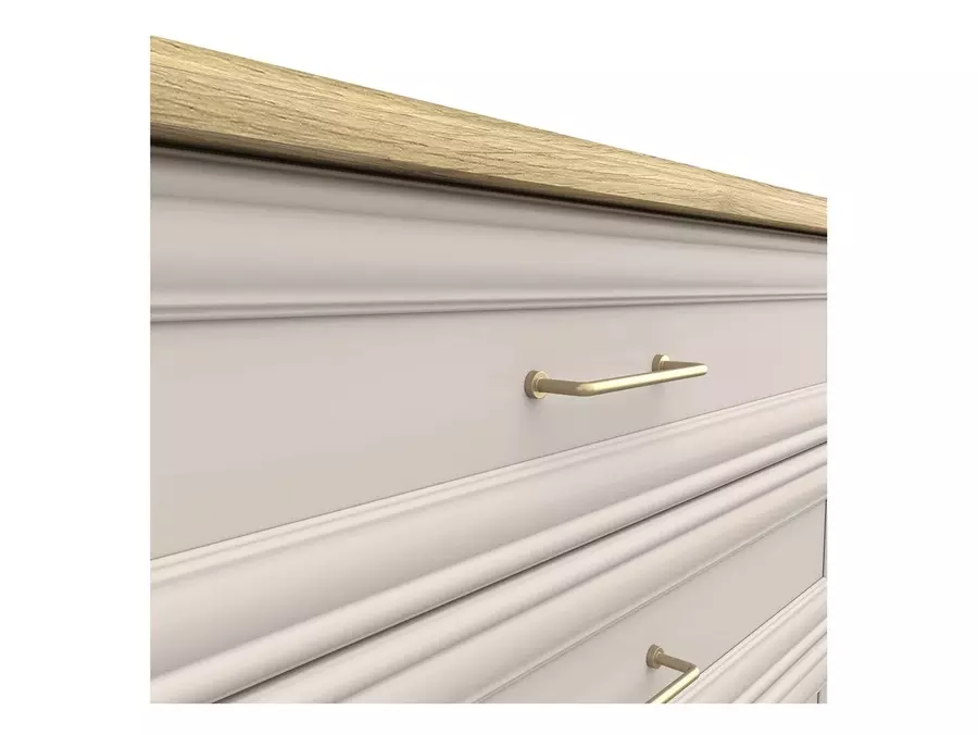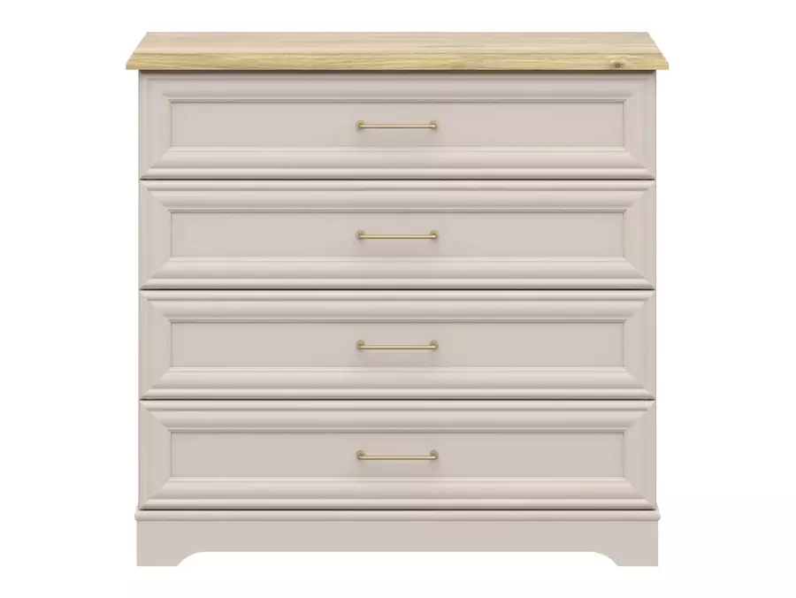 Скрин АНГА от колекция АНГА е практично и стилно допълнение към всеки дом, съчетаващо функционалност с топла и уютна визия. Моделът разполага с четири удобни чекмеджета, които осигуряват достатъчно място за съхранение на дрехи, бельо или други лични вещи, като същевременно поддържат пространството подредено и организирано.