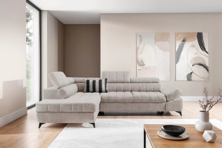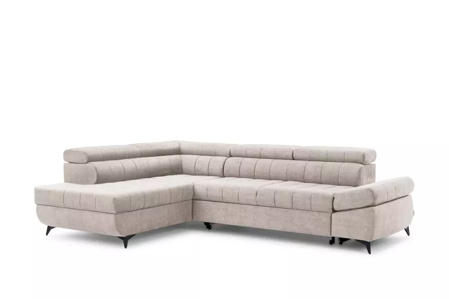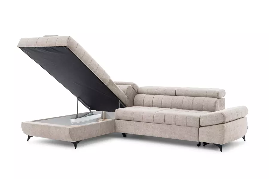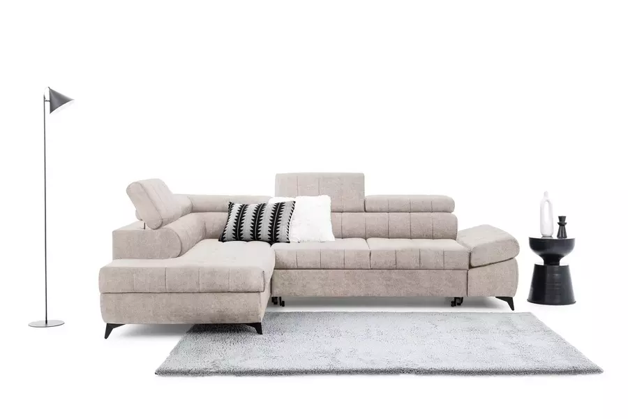 Ъглов диван ВАЛОРИС L е създаден за тези, които търсят максимален комфорт, функционалност и модерна визия в едно. Моделът разполага с широка лежанка с практична ракла за съхранение, а благодарение на удълженото гръбче на лежанката, позволява удобно настаняване на повече хора – идеално решение за семейни събирания или срещи с приятели.