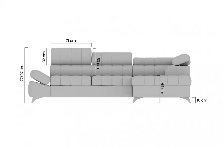 Диванът е оборудван с функция сън с площ 194x124 см, осигуряваща удобство при необходимост от допълнително място за спане. Подглавниците се регулират на пет степени, което позволява персонализиране на позицията за почивка и релакс.