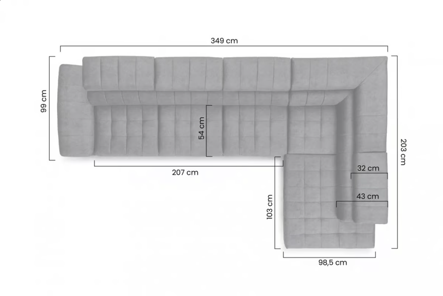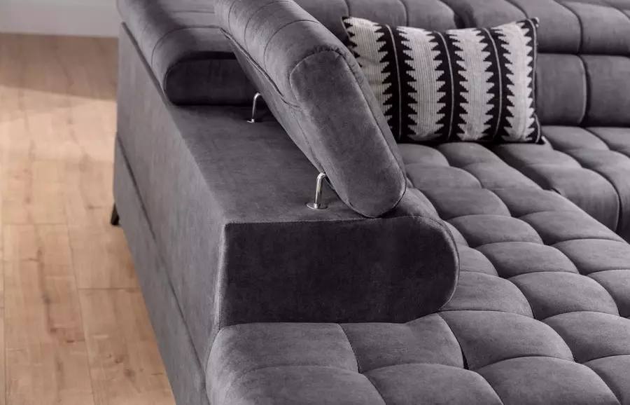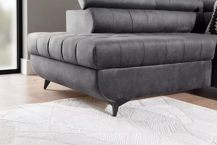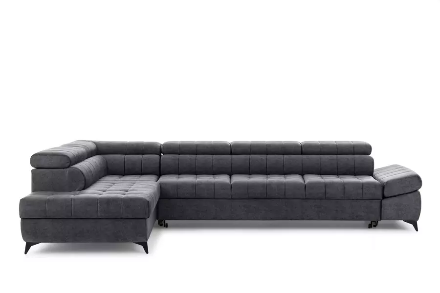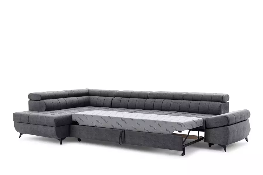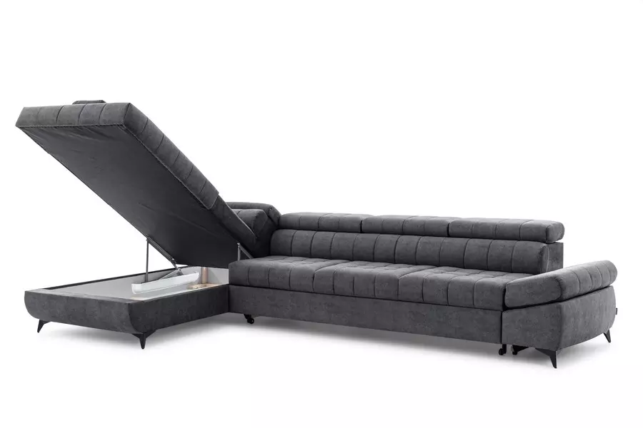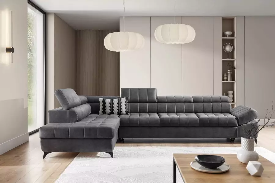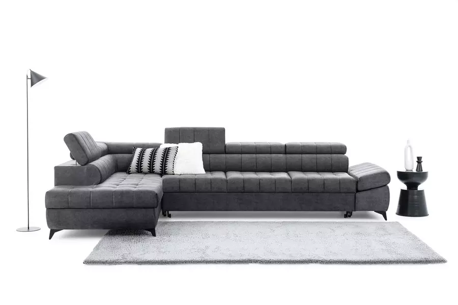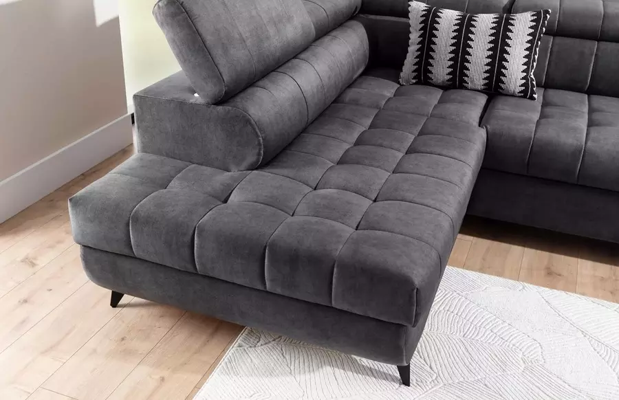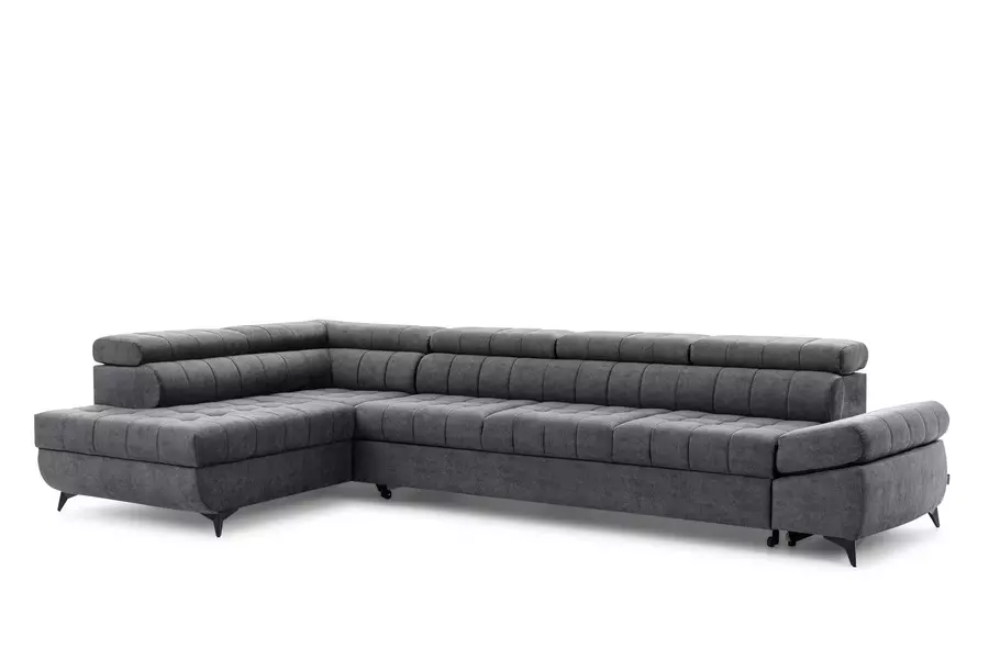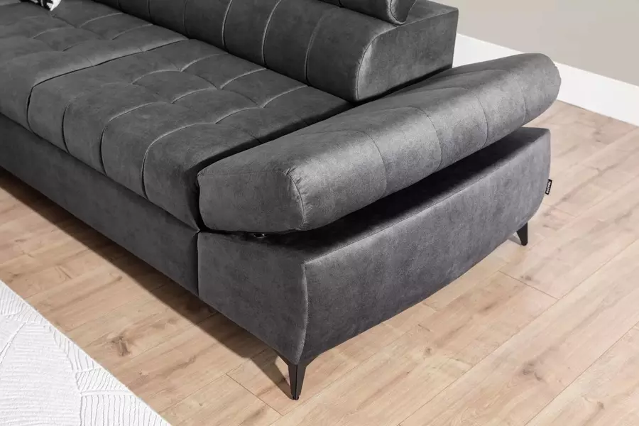 Ъглов диван ВАЛОРИС МАКСИ впечатлява с мащабна визия, висока функционалност и прецизно внимание към детайла. Проектиран да осигури изключителен комфорт в съвременния дом, моделът разполага с просторна лежанка и вградена ракла, предлагаща допълнително място за съхранение. Гърбът на лежанката е специално оформен така, че позволява удобно настаняване на повече хора, без компромис с комфорта.