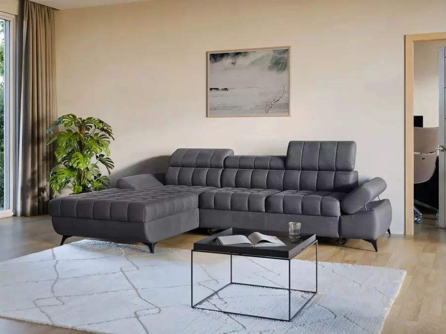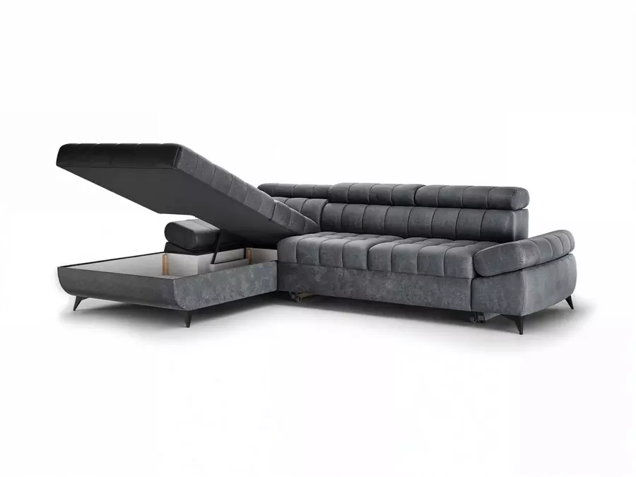 Ъглов диван ВАЛОРИС МИНИ е интелигентно проектирано решение за съвременния дом, което съчетава компактни размери с изключителен комфорт и функционалност. Моделът разполага с широка лежанка и голяма ракла за съхранение, подходяща за одеяла, възглавници и други вещи, които трябва да бъдат на удобно място. Удълженото гръбче на лежанката позволява по-удобно настаняване на повече хора, без компромис с пространството.