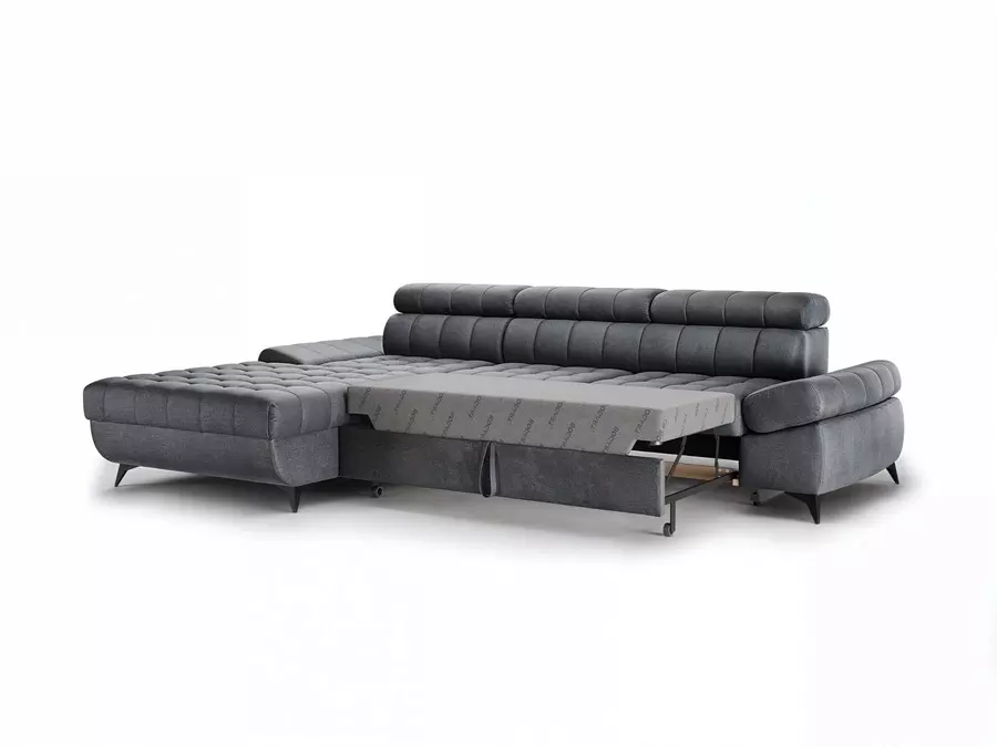 Диванът е оборудван с функция сън с площ 211 x 124 см, която осигурява комфортно място за почивка или нощувка. Петстепенният механизъм за регулиране на подглавниците позволява персонализиране на позицията според индивидуалните предпочитания. Допълнително удобство предлагат и подлакътниците, които също разполагат с механизъм за регулиране на височината – решение, което гарантира максимален комфорт при различни позиции на тялото.