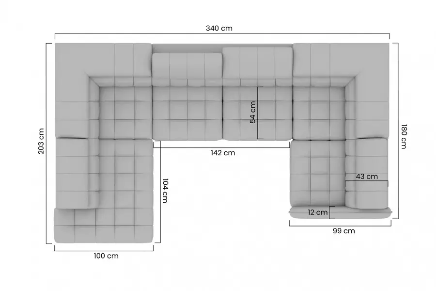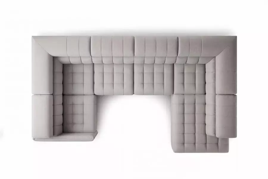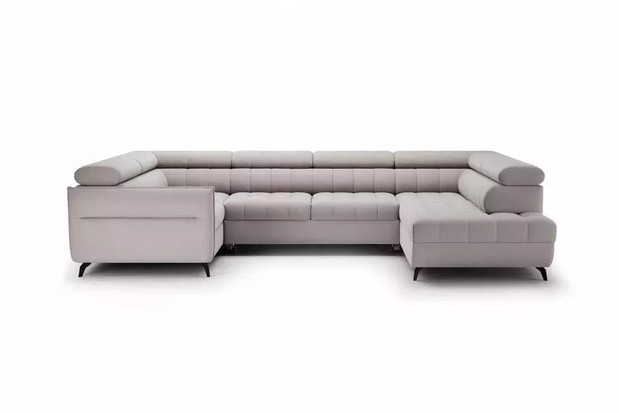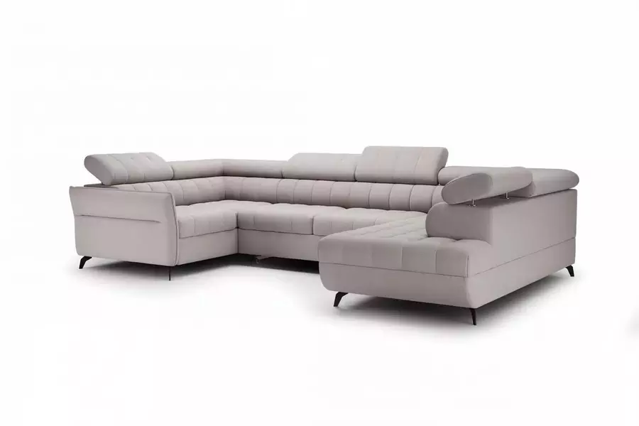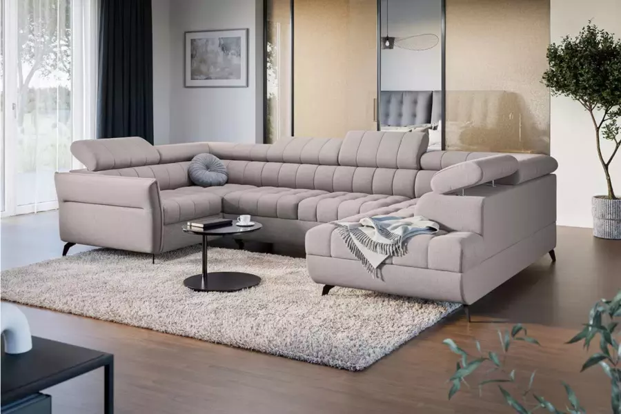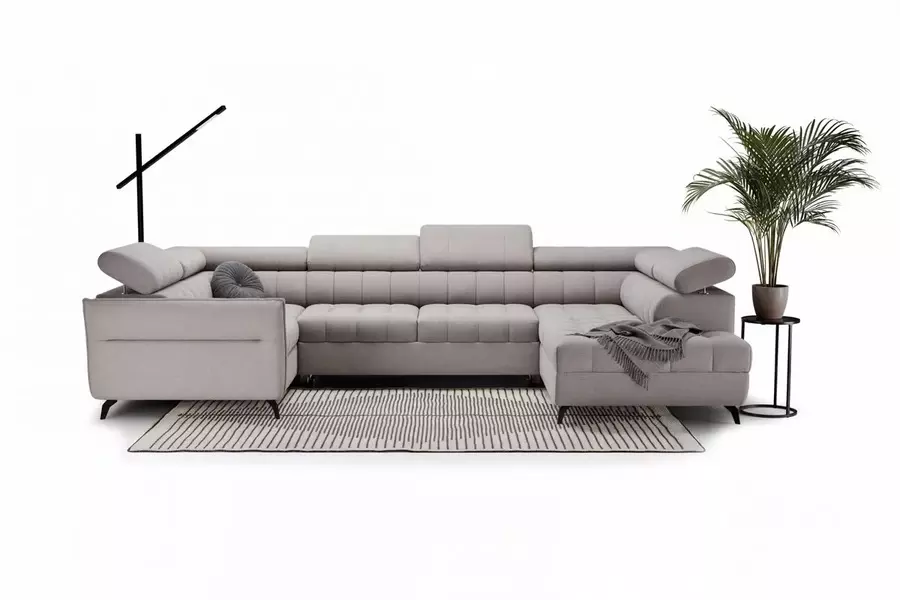 Ъглов диван ЕЛАРИАС U е стилно и функционално решение за просторни дневни, създадено с мисъл за комфорт и оптимално използване на пространството. Със своя П-образен дизайн и голяма лежанка с гръбче, моделът осигурява изобилие от места за сядане, позволявайки удобно настаняване на повече хора – идеален избор за семейни събирания или гости.