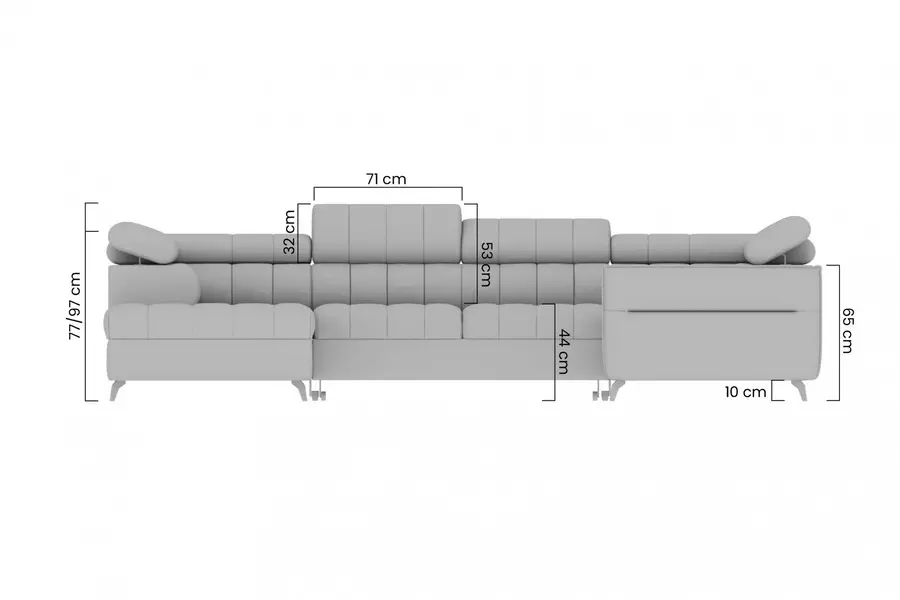 Диванът е оборудван с вградена ракла за съхранение, подходяща за одеяла, възглавници и други вещи, които искате да държите под ръка, но извън полезрението. Функцията сън с площ 248 x 124 см превръща дивана в удобно легло за нощувка или почивка. Петте степени на регулиране на подглавниците позволяват индивидуално настройване на позицията според желанието за почивка, четене или гледане на телевизия.