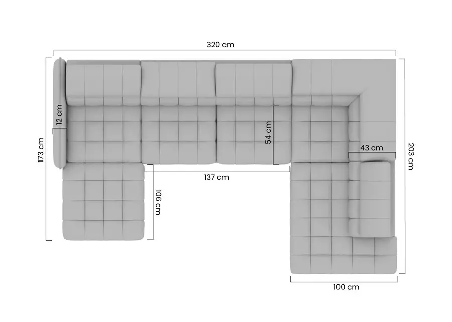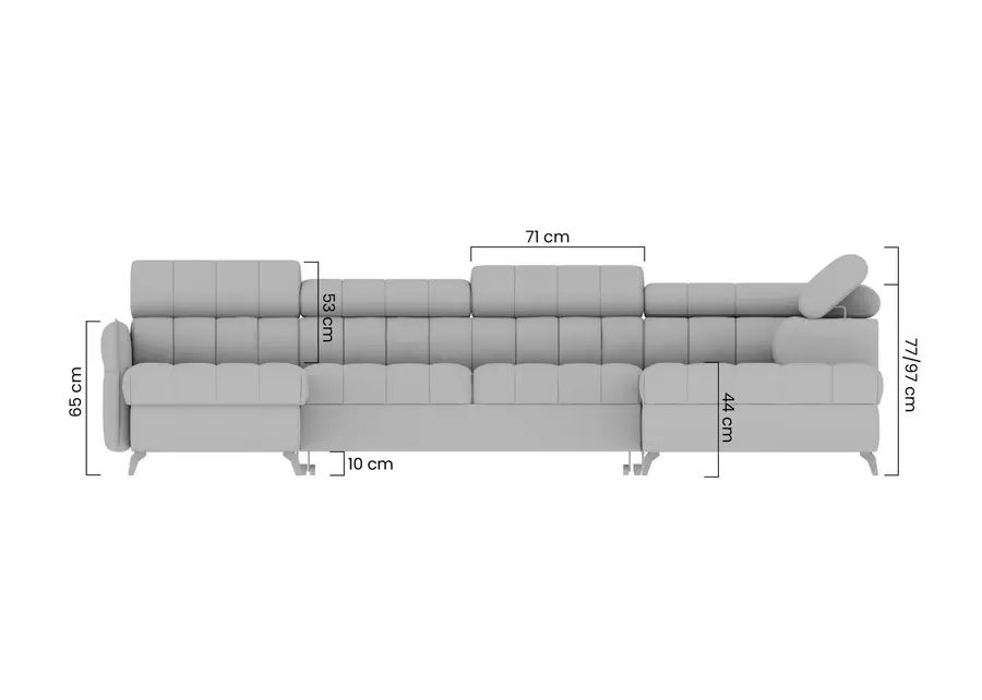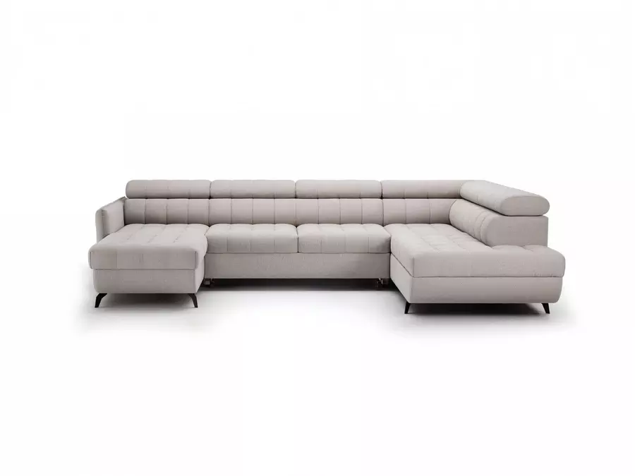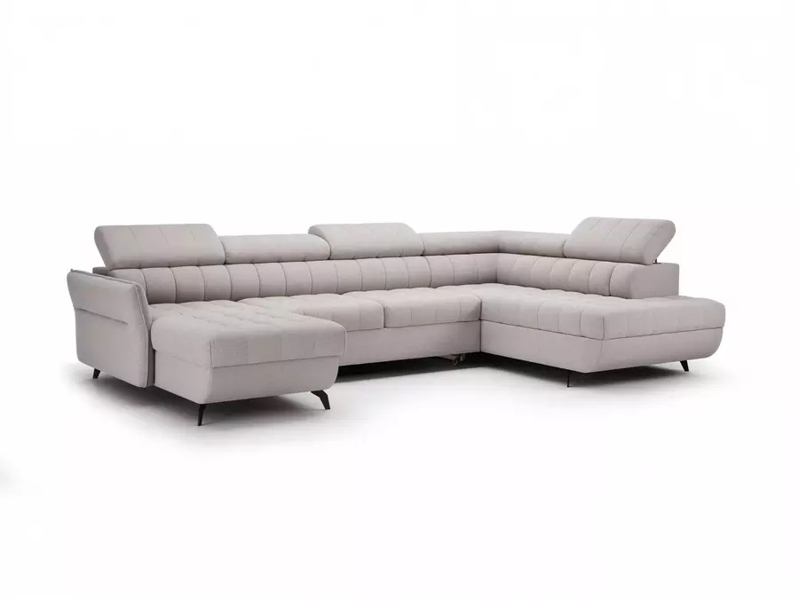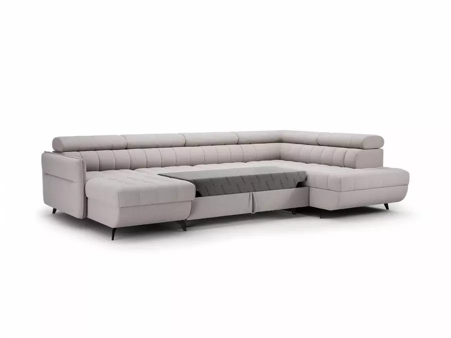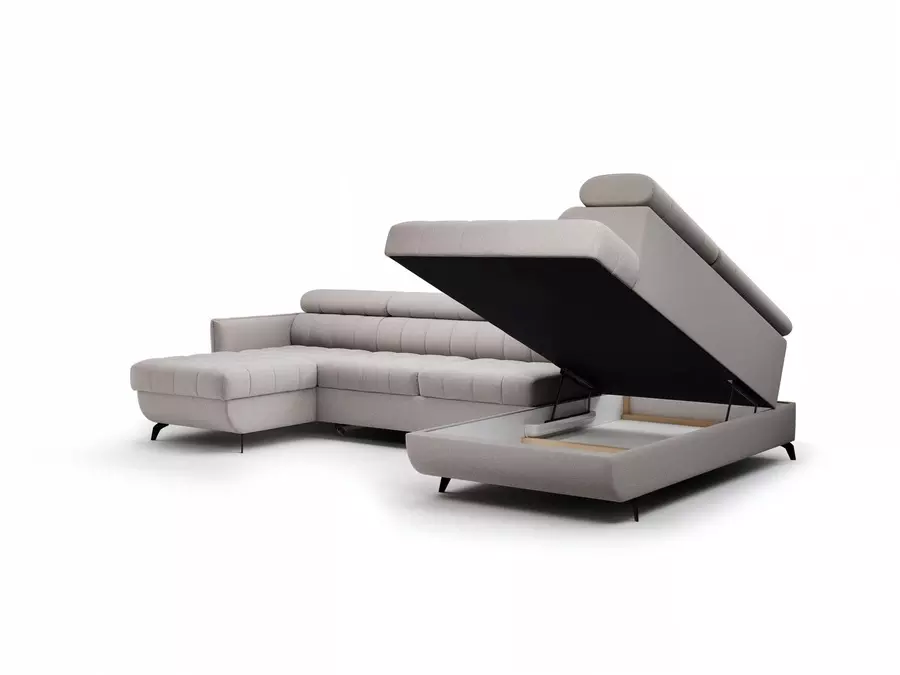 Диванът разполага с голяма ракла за съхранение на вещи и функция сън с щедра площ от 263 x 124 см – идеална както за гости, така и за ежедневно използване. Подглавниците се регулират в пет степени, което осигурява персонализиран комфорт според индивидуалните предпочитания и ситуации – независимо дали почивате, четете или гледате телевизия.