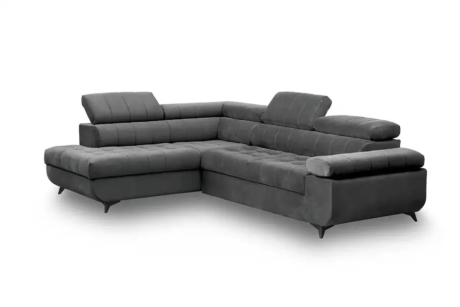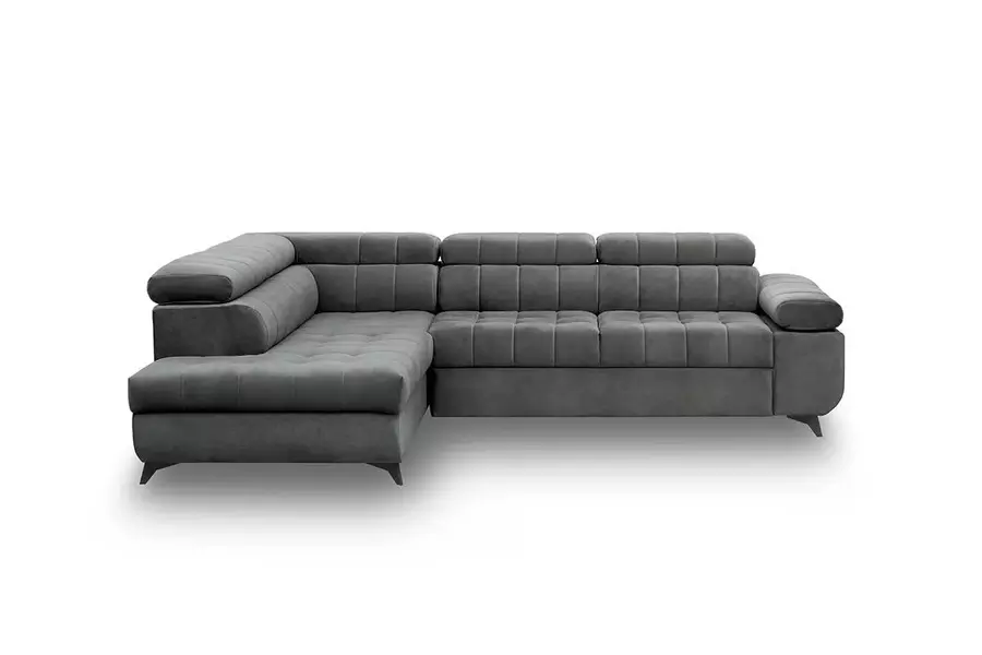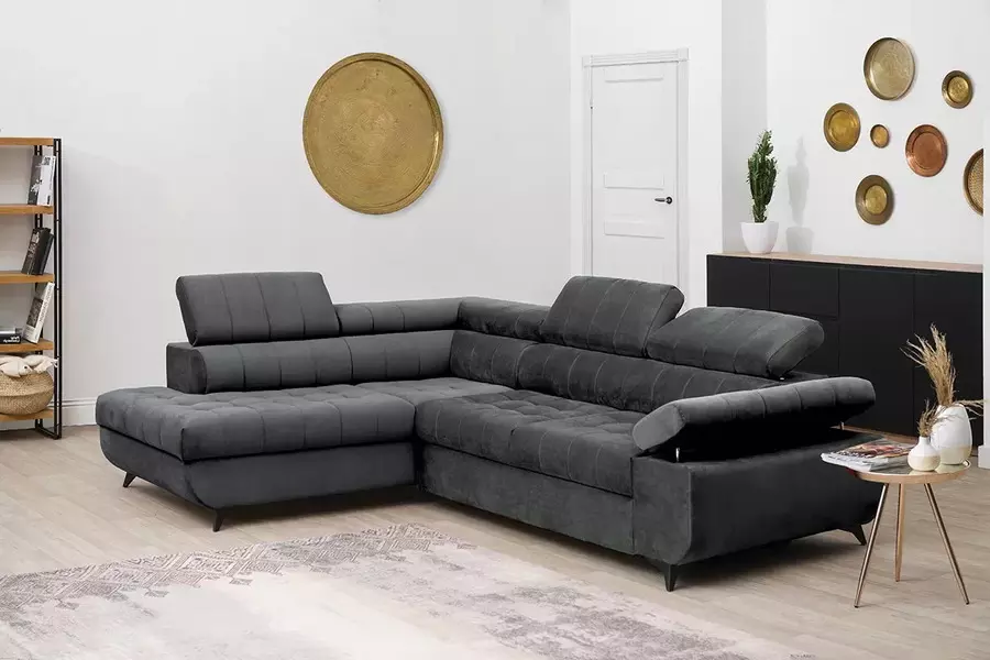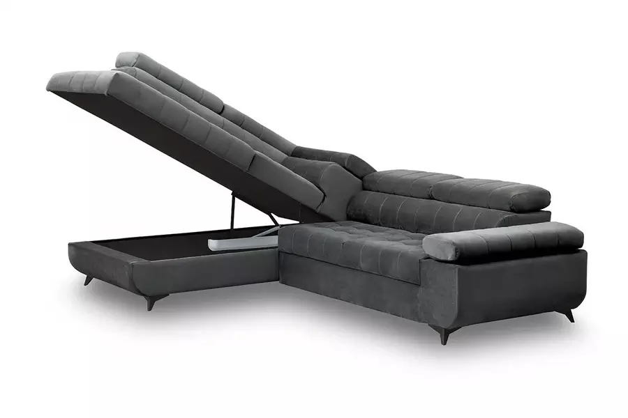 Ъглов диван ДРАГОНИС L е съвременно решение за интериора, съчетаващо висок комфорт, функционалност и елегантна визия. Проектиран с внимание към детайла, моделът разполага с просторна лежанка с голяма ракла за съхранение на спално бельо, възглавници или други вещи, които искате да държите подръка. Благодарение на допълнителното гръбче на лежанката, диванът осигурява повече места за сядане, без да се компрометира удобството.