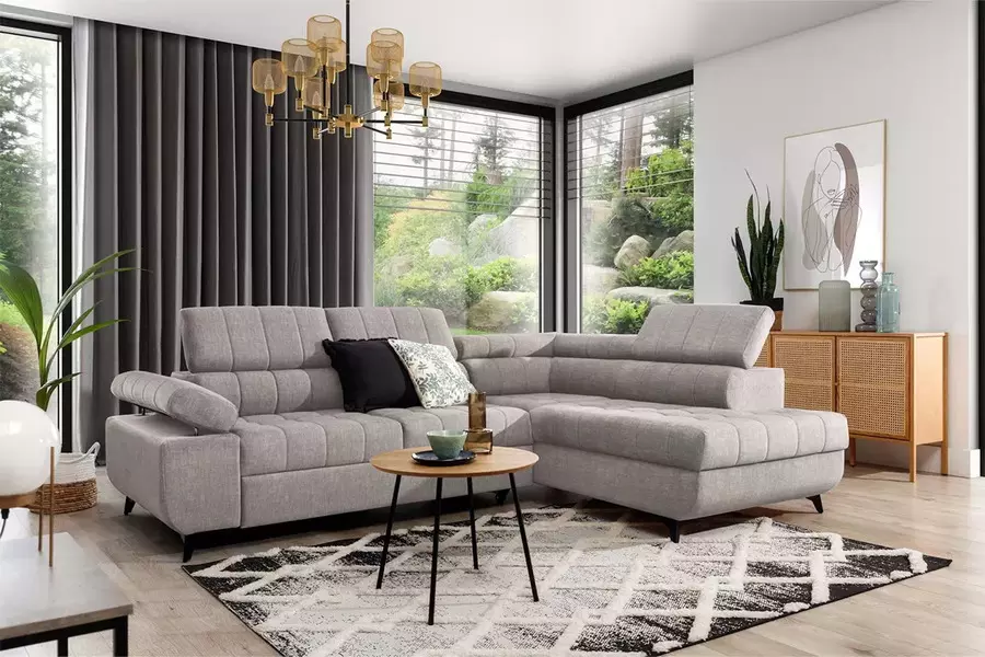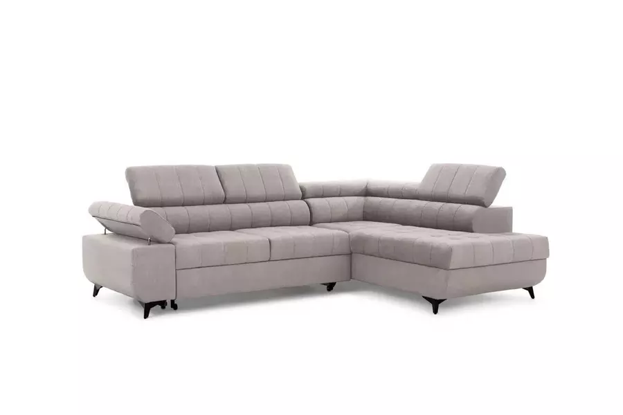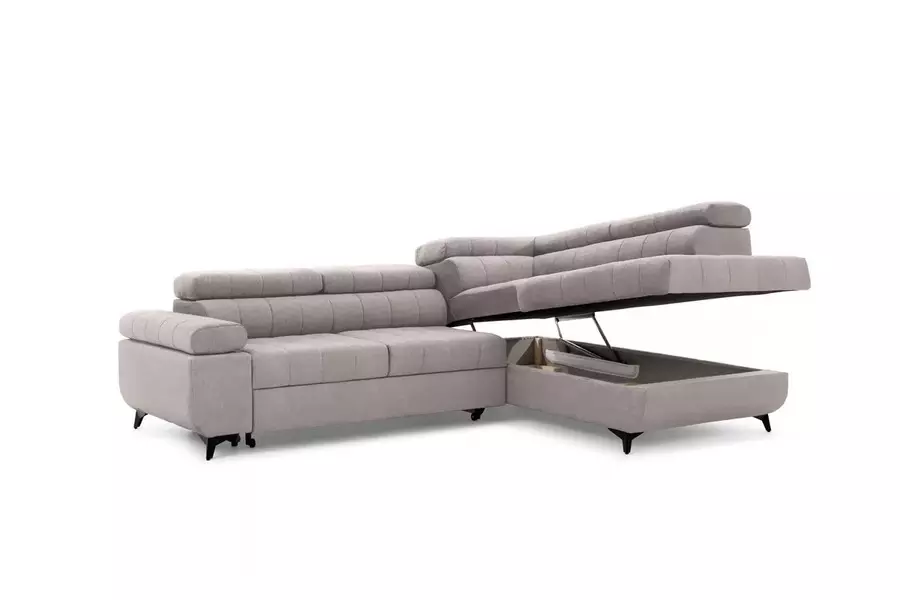 Ъглов диван ДРАГОНИС L е съвременно решение за интериора, съчетаващо висок комфорт, функционалност и елегантна визия. Проектиран с внимание към детайла, моделът разполага с просторна лежанка с голяма ракла за съхранение на спално бельо, възглавници или други вещи, които искате да държите подръка. Благодарение на допълнителното гръбче на лежанката, диванът осигурява повече места за сядане, без да се компрометира удобството.