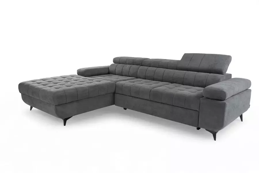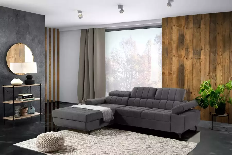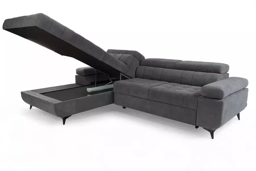 Ъглов диван ДРАГОНИС L II е компактно, но изключително функционално решение за съвременния дом. Със своя изчистен силует и прецизно обмислени пропорции, моделът е идеален за по-малки пространства, без да прави компромис с удобството и качеството. Разполага с голяма ракла, осигуряваща допълнително място за съхранение на спално бельо, възглавници или други вещи, които трябва да бъдат леснодостъпни, но дискретно прибрани.