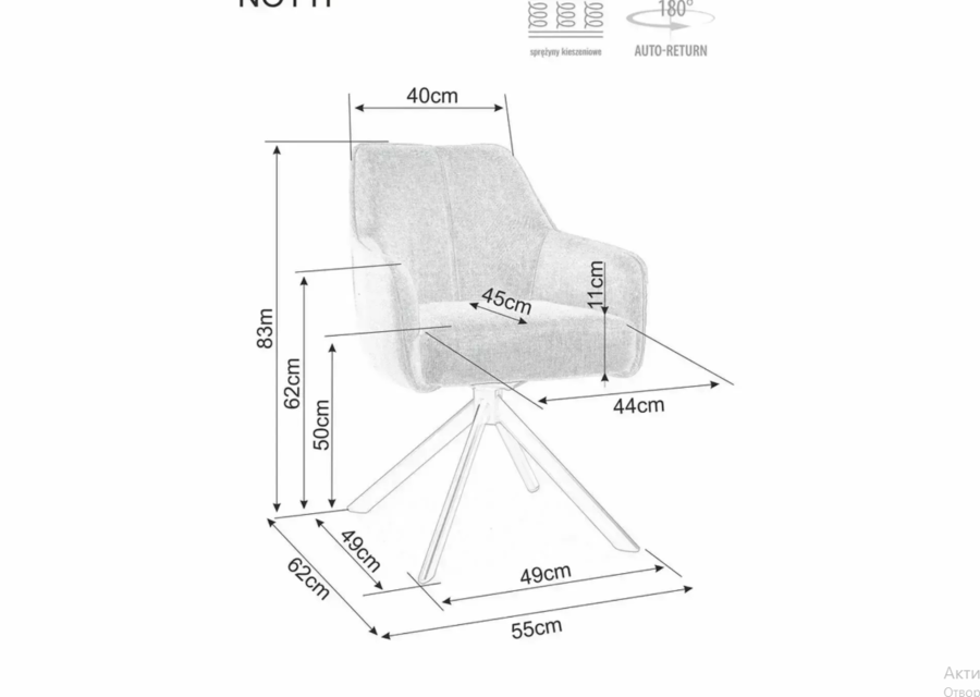 Уникалната функция за въртене на седалката на 180 градуса, съчетана с механизъм за автоматично връщане в изходна позиция, прави креслото не само стилно, но и изключително практично. С максимално натоварване до 120 кг, кресло НОТТИ БРЕГО предлага надеждност и дълготрайност. Това е идеален избор за всяка модерна дневна, офис или салон.