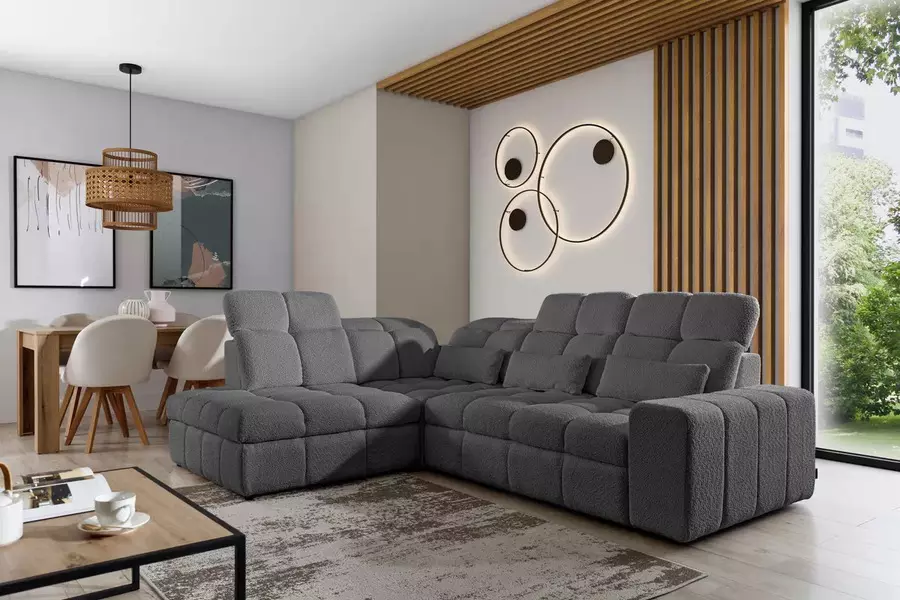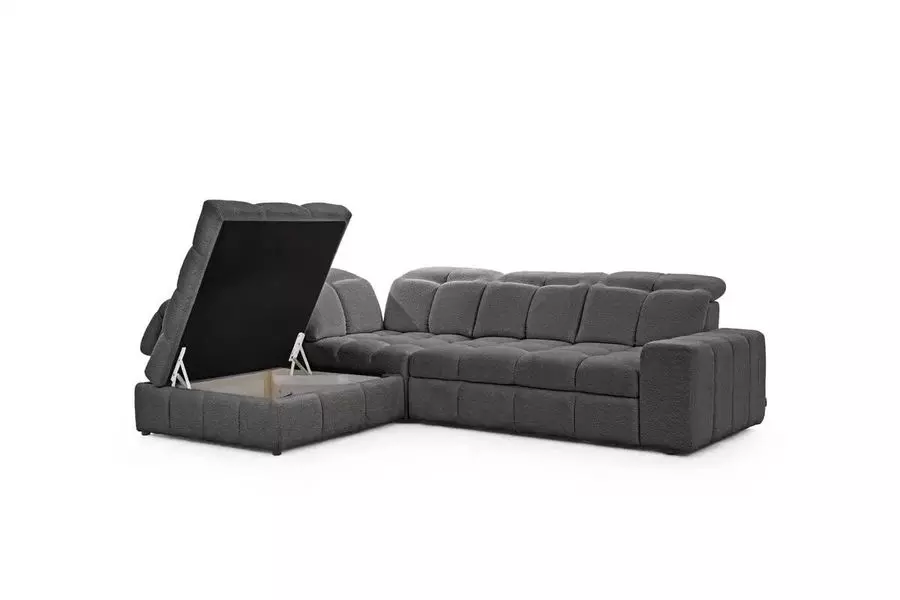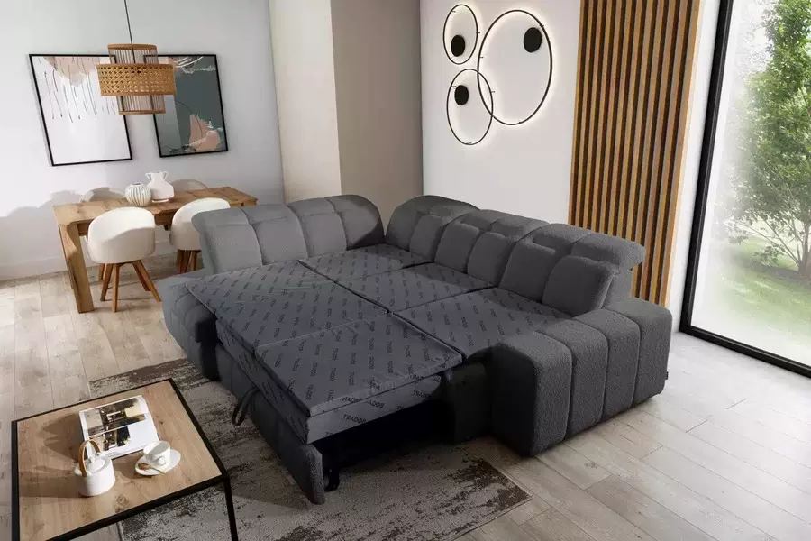 Ъглов диван МАГНЕЛИО L съчетава модерен дизайн, висок комфорт и иновативна функционалност, за да отговори на нуждите на съвременния дом. Моделът е снабден с практична ракла за съхранение, както и с механизъм за сън тип „делфин“, който осигурява бързо и лесно трансформиране в удобно легло за почивка или гости.