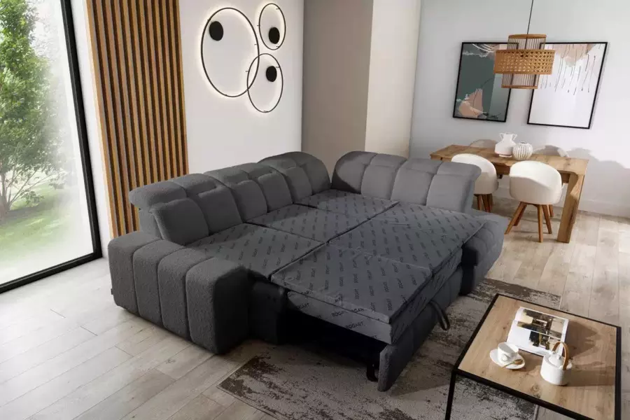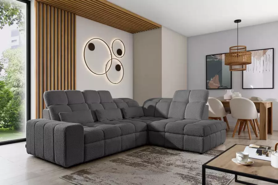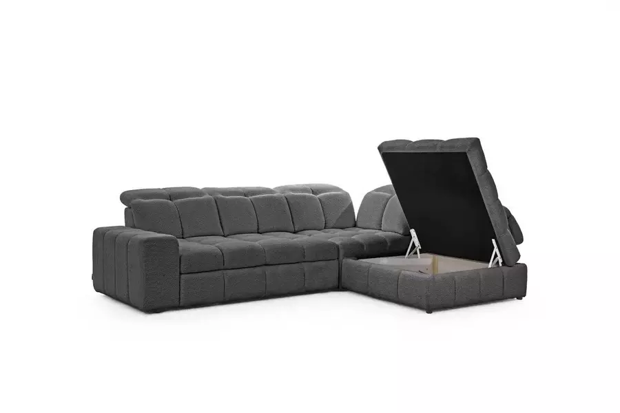 Ъглов диван МАГНЕЛИО L съчетава модерен дизайн, висок комфорт и иновативна функционалност, за да отговори на нуждите на съвременния дом. Моделът е снабден с практична ракла за съхранение, както и с механизъм за сън тип „делфин“, който осигурява бързо и лесно трансформиране в удобно легло за почивка или гости.