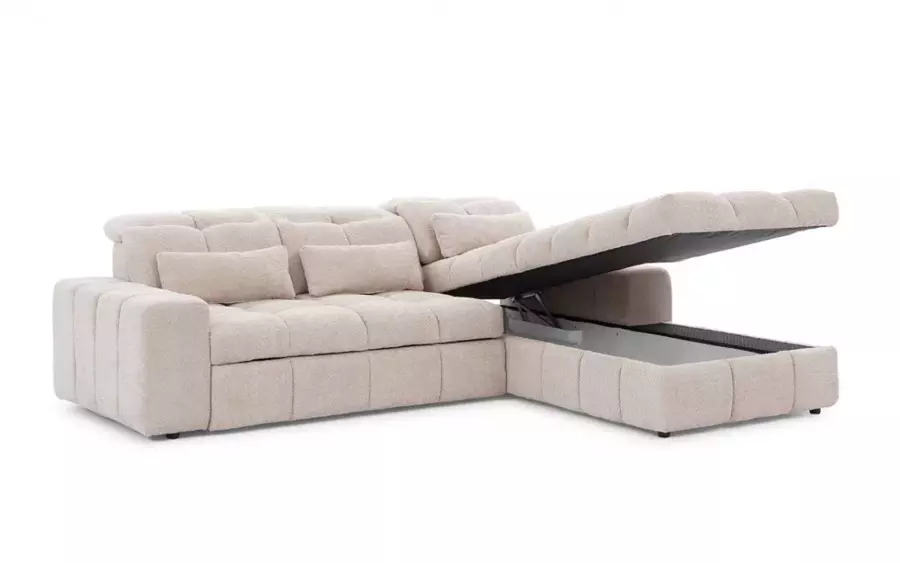 Ъглов диван МАГНЕЛИО МИНИ е компактно, но високофункционално решение за модерния дом, съчетаващо удобство, интелигентен дизайн и гъвкави възможности за персонализация. Снабден с практична ракла, моделът предоставя допълнително място за съхранение на вещи, а вградената функция сън с механизъм тип „делфин“ осигурява лесна и надеждна трансформация в удобно легло при необходимост.
