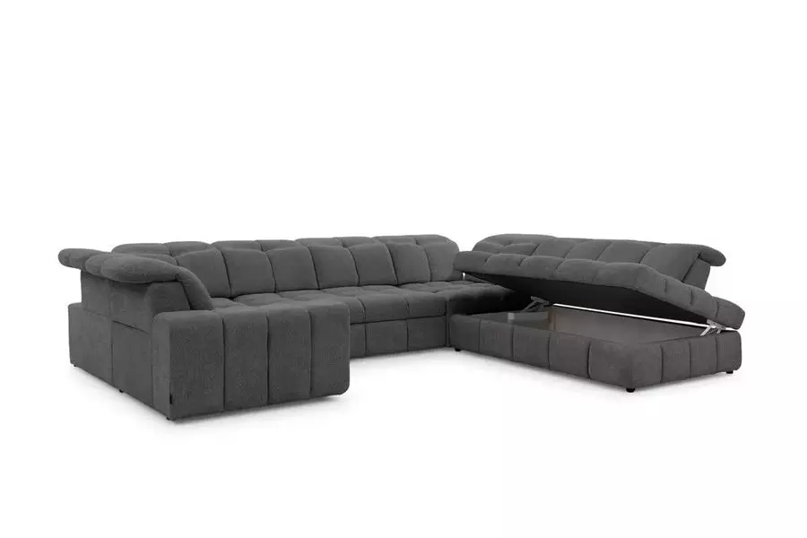 Моделът разполага с голяма ракла, която осигурява допълнително пространство за съхранение на одеяла, възглавници и други вещи. Механизмът за сън тип „делфин“ се разтяга лесно и предлага голяма площ за спане – 273 x 160 см, подходяща както за гости, така и за редовна употреба. За още по-високо ниво на удобство, диванът е оборудван с електрически механизъм за регулиране на дълбочината на седалката, който позволява адаптация според моментните нужди.